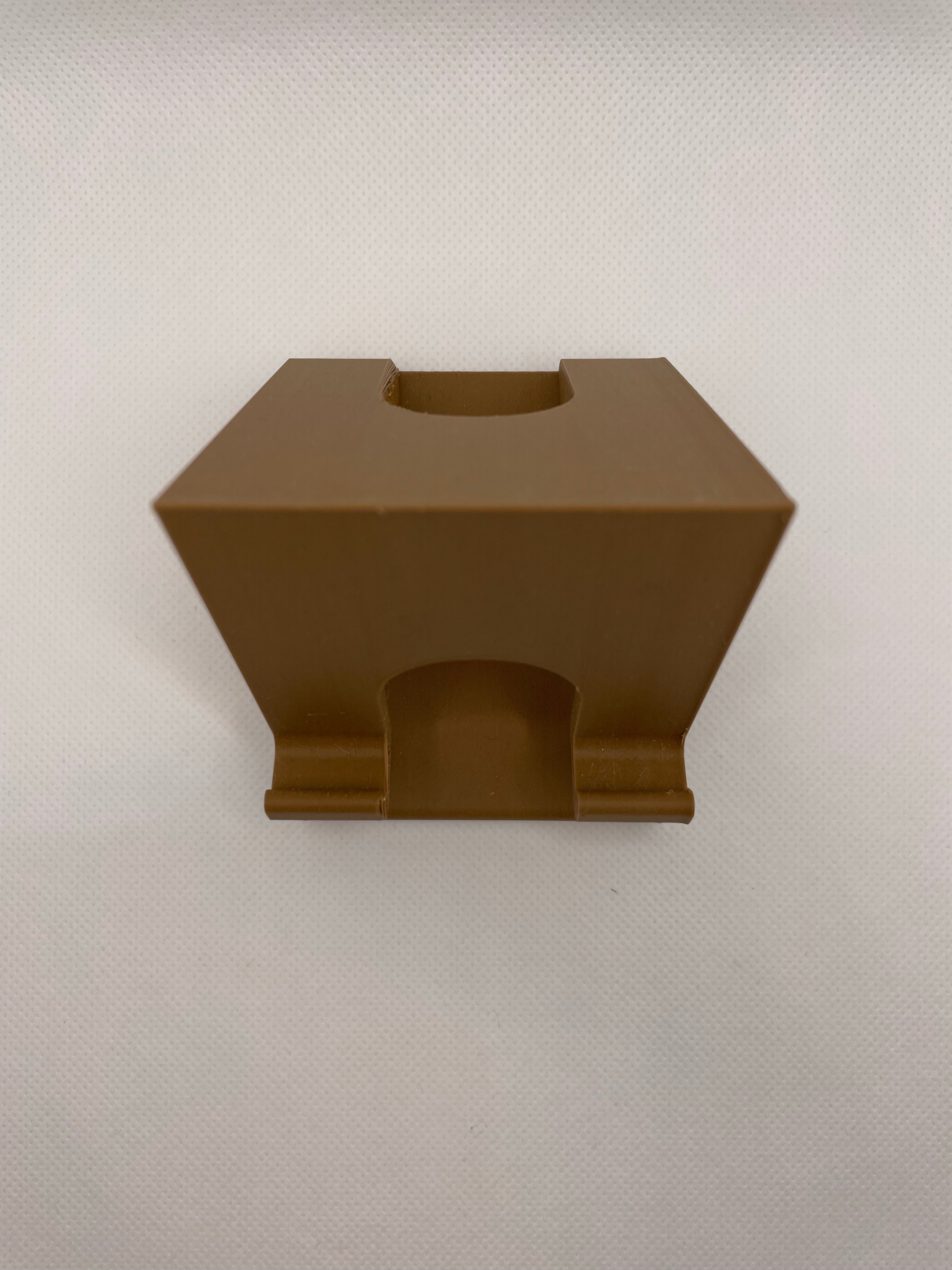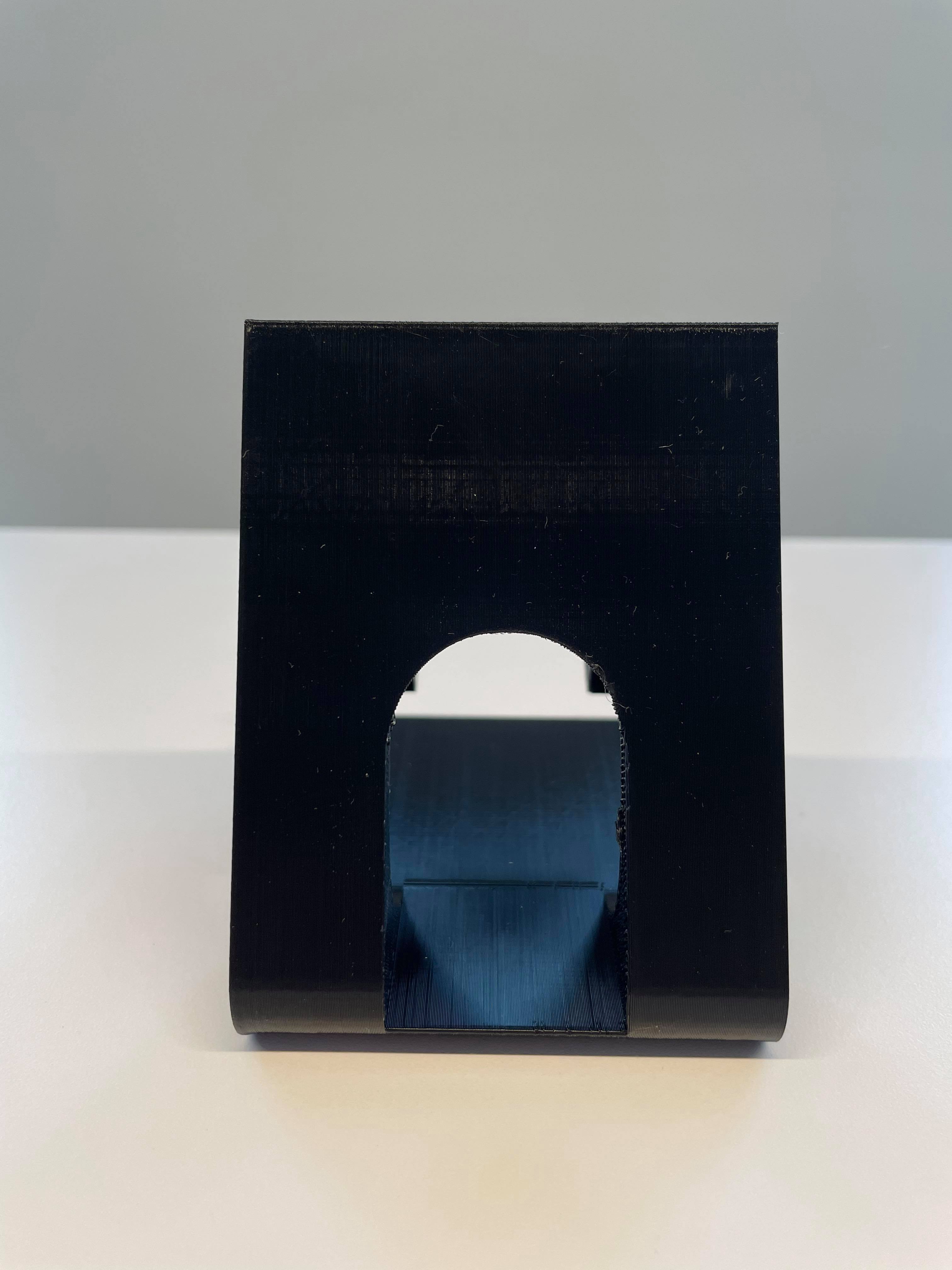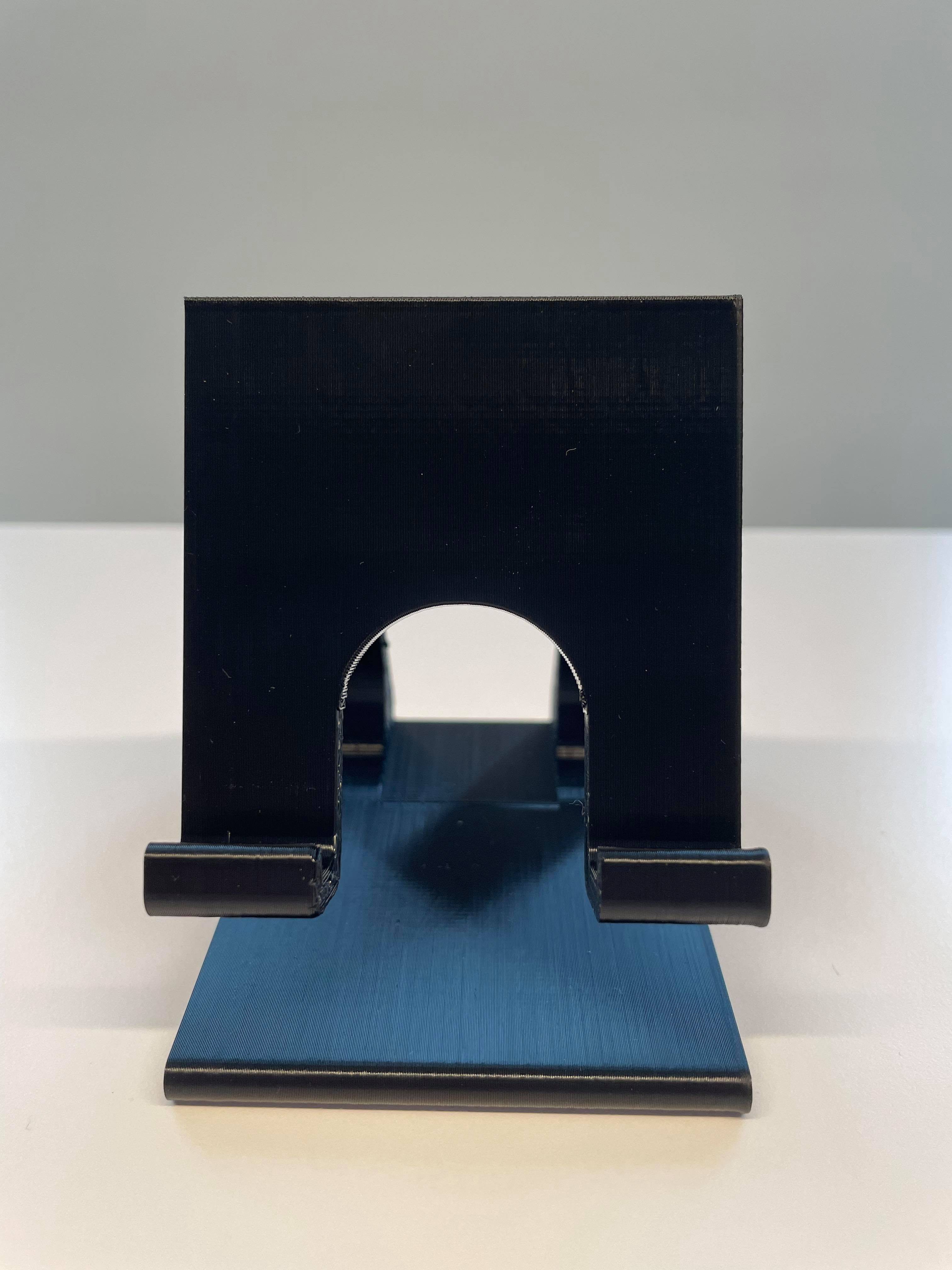 Universal telefon stand. Kablet går gennem hullet, og kan derefter føres op til telefonen.