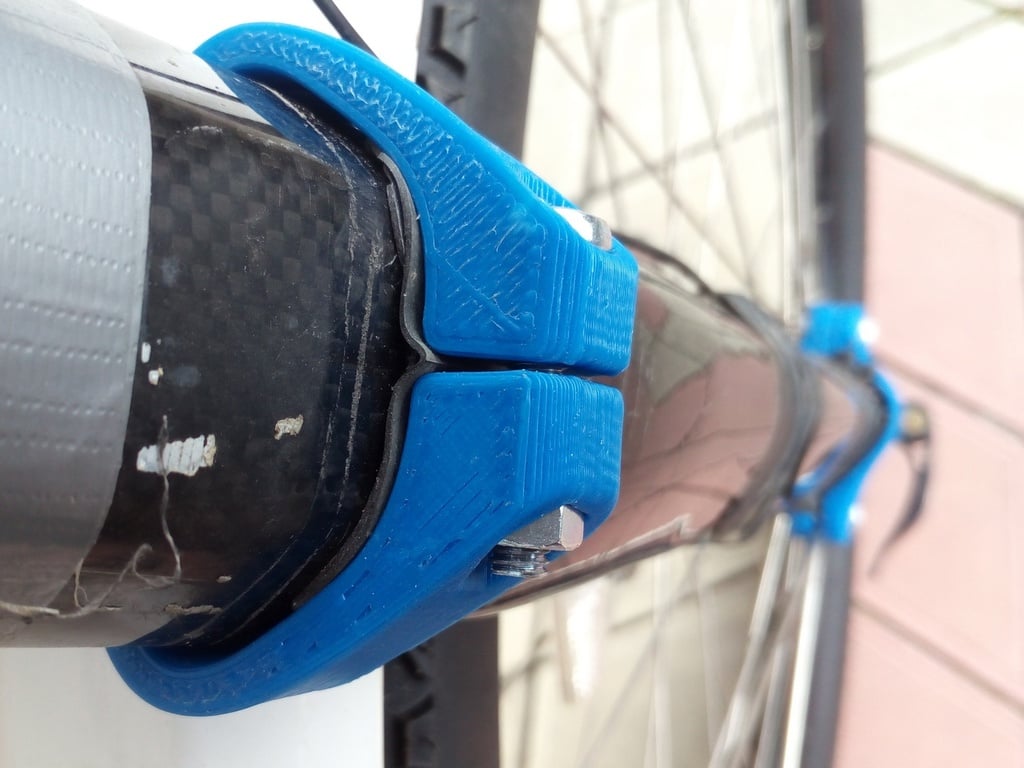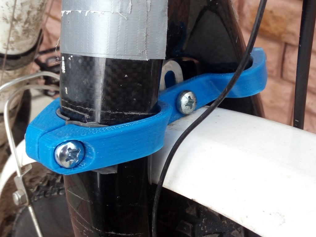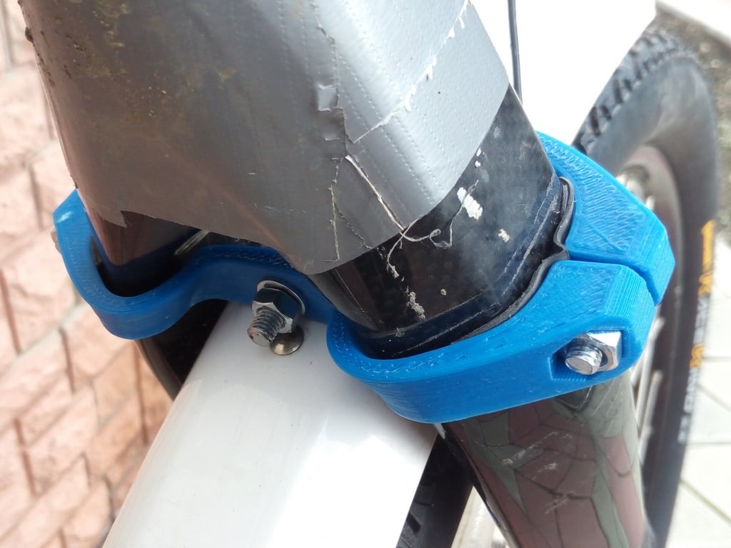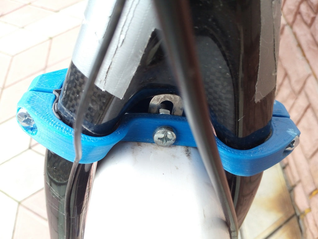Simpel og pålidelig skærmeholderklemme til montering af et fuldt forskærm på en 29er MTB med kulfiberforgaflen. Designet til at passe til mange typer kulfibergafler og give en stabil og robust montering.