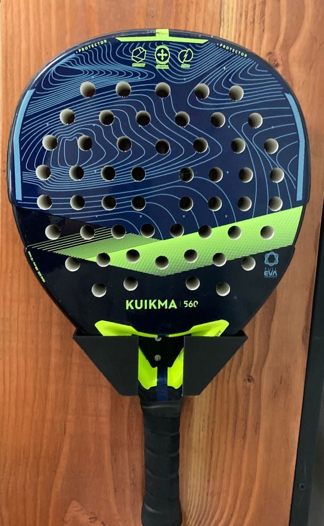 Padel racketholder til montering med to #6 skruer. Kuikma 560 holderen kan sikre opbevaring af din padel racket på en sikker og praktisk måde. Perfekt til både hjemmebrug og i sportsklubben.