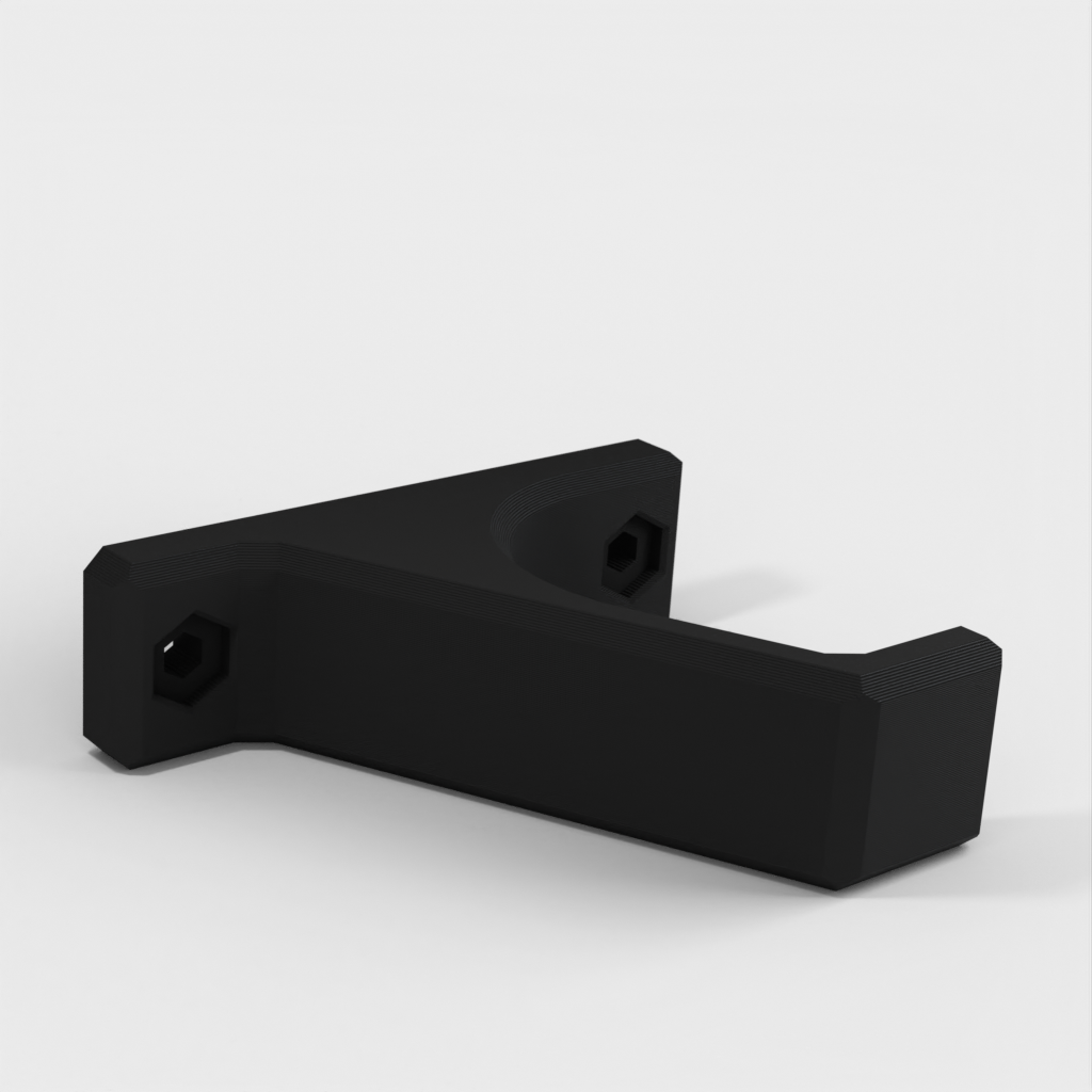 MTB cykelhjelmhænger med praktisk krogdesign, der kan monteres på væggen for nem og sikker opbevaring af din hjelm. De sekskantede skruehuller sikrer en printer-venlig produktion og modellen har en indfældet plads til skruehovedet, så det ikke generer hjelmen. Afstanden mellem monteringshullerne er 53 mm, der passer til skruer på op til 4 mm diameter og 8 mm i diameter og 2 mm tykke hoveder.