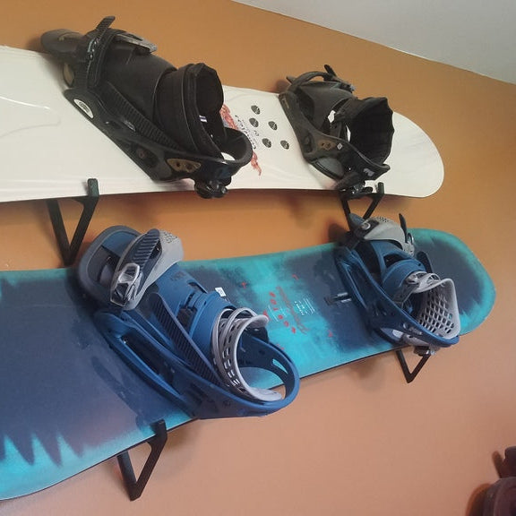 PriseDenne Snowboard Wall Mount er simpel at installere, og er ualmindelig stærk. Designet overfører det meste af vægten til rammen, snarere end at lægge en stor belastning tæt på skruen, som det ses med andre designs. Dette betyder, at det kun kræver en skrue ind i en væg stud. De to snowboards, der er afbilledet, har hængt i over et år, og alligevel sover jeg trygt under dem.