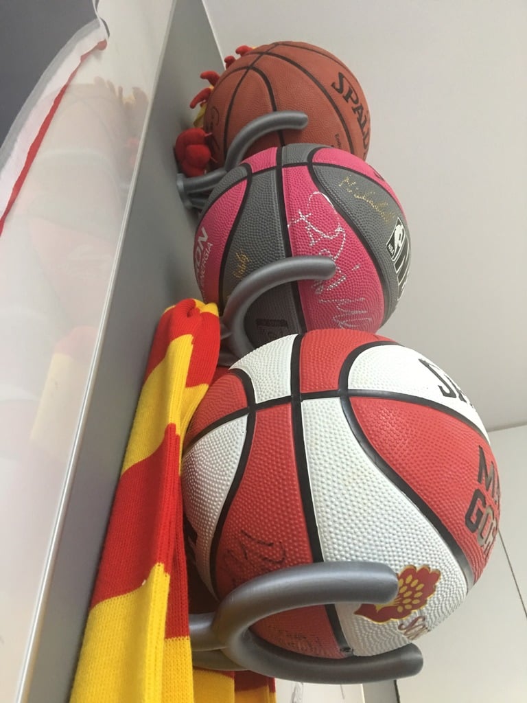 Dette er et ophæng til basketbolde i størrelse 6 eller mindre. Vægophænger kan monteres direkte på væggen med skruer (medfølger ikke), hvilket gør det nemt at opbevare din basketball på en praktisk og organiseret måde.