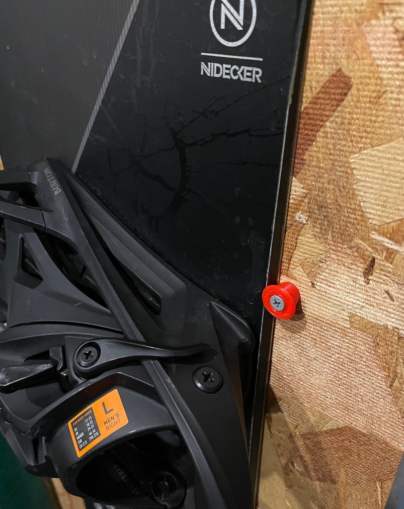 Et enkelt, men effektivt system til at holde dit snowboard væk fra gulvet. Monteringssystemet udnytter snowboardets konkave form.