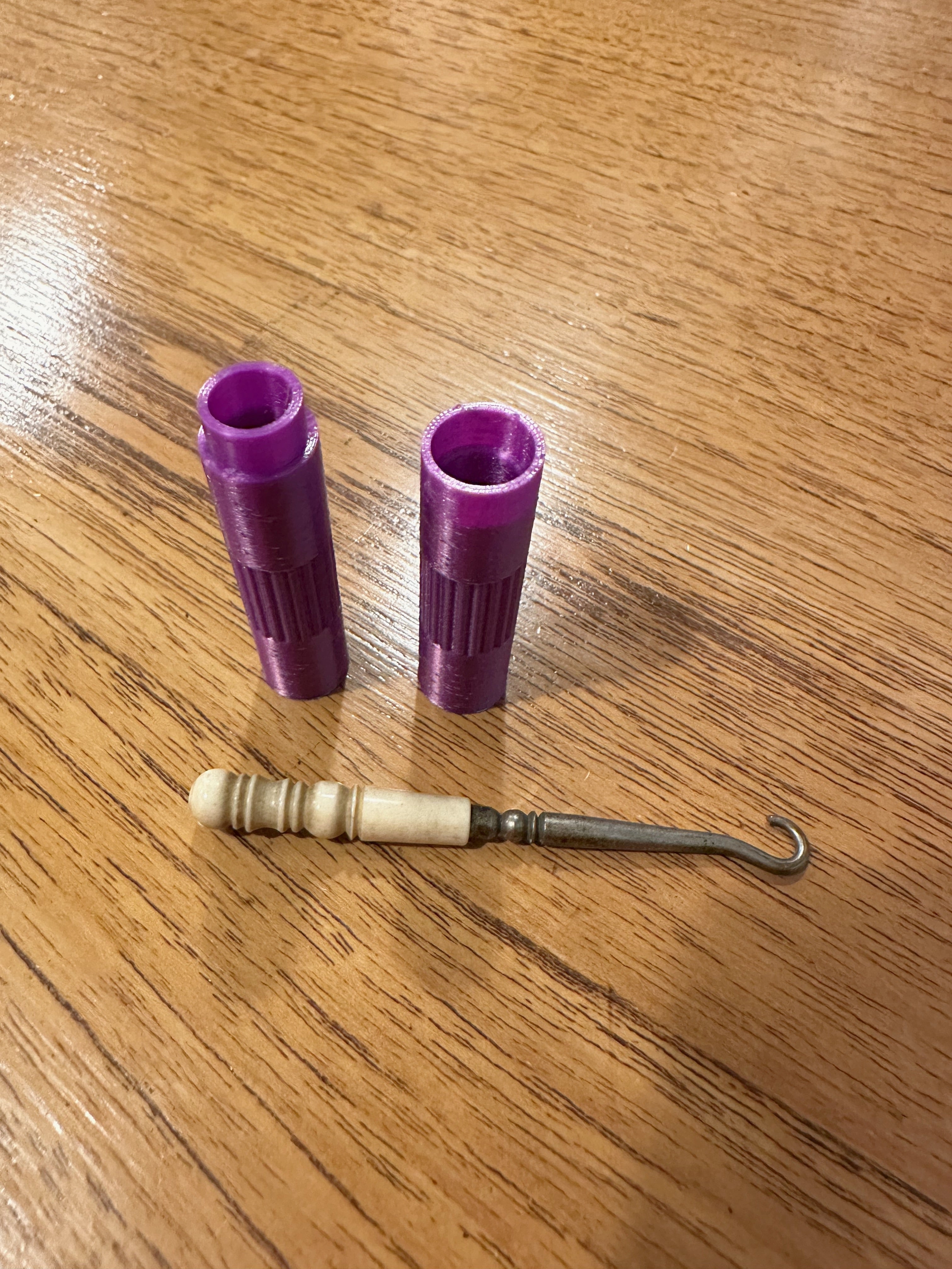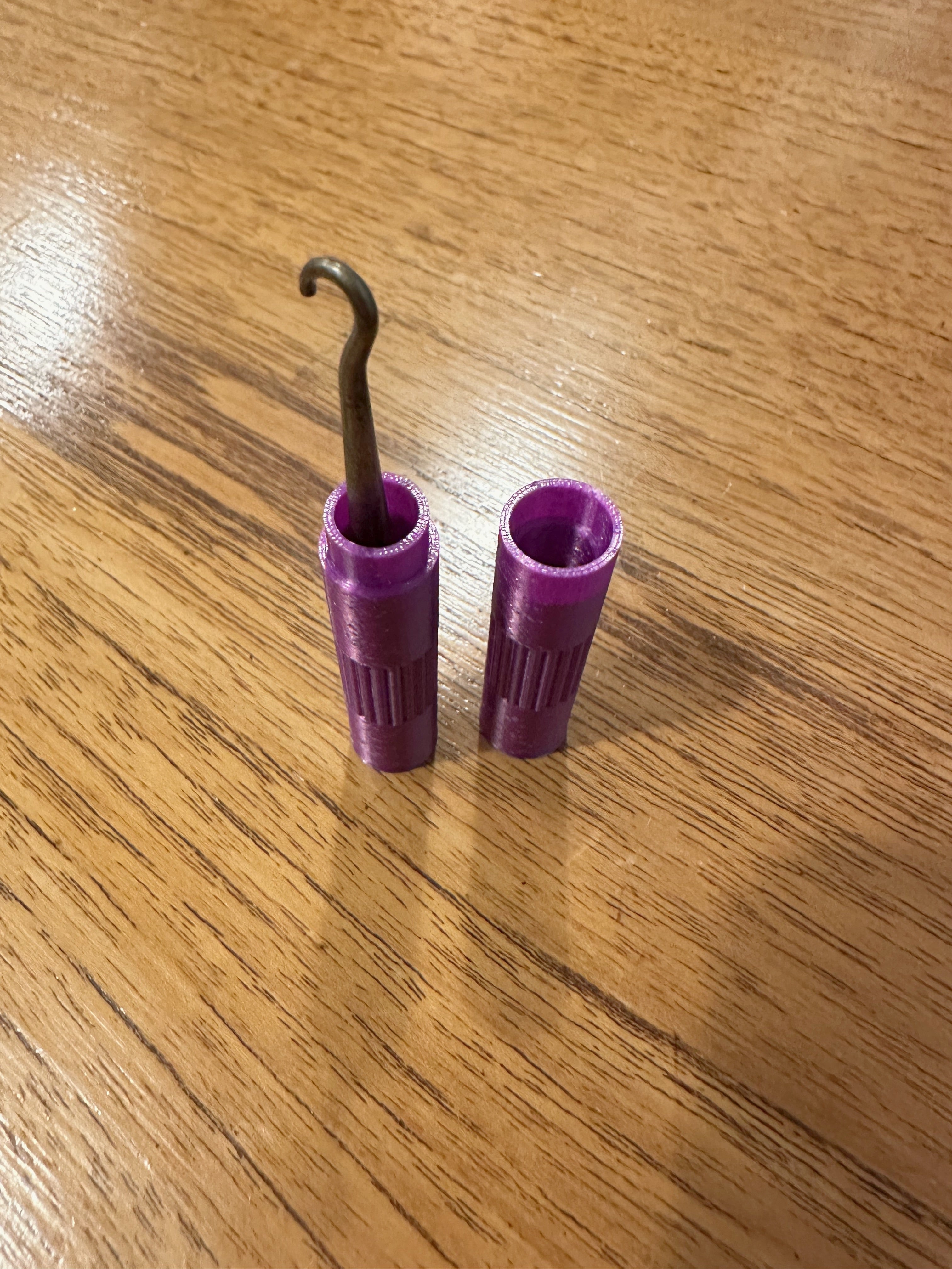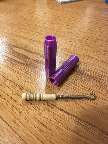 Opbevar dine garn- og knaphækler sikkert og stilfuldt med denne dekorative taske. Måler 90 mm i længden og 12 mm i diameter, hvilket gør den perfekt til at rumme objekter med en diameter på op til 7,5 mm. Den bruger et praktisk push-fit design, der sikrer, at din hæklenål eller knaphækle forbliver på plads. Ideel til håndarbejdsentusiaster, der ønsker at holde deres værktøjer organiseret og let tilgængelige.