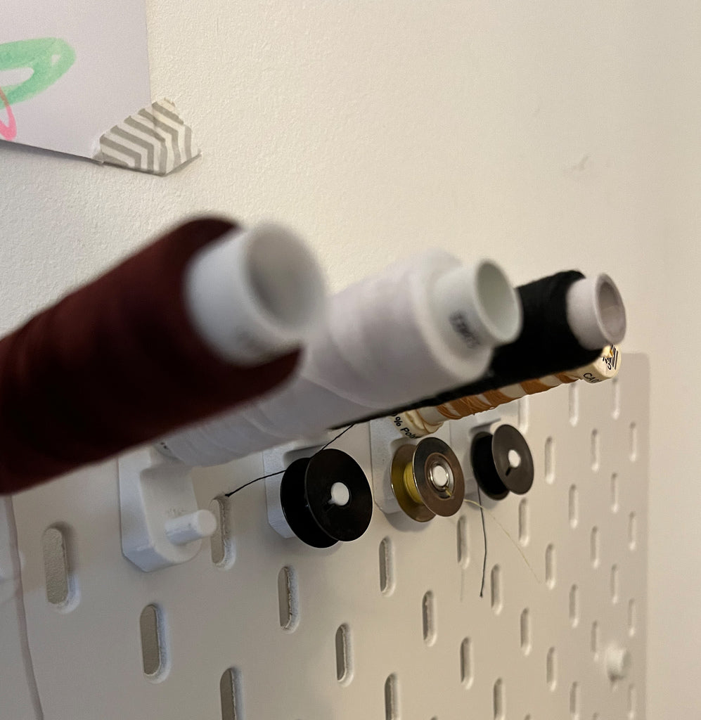 IKEA SKADIS sytrådsholder er den ideelle løsning til at holde styr på dine garnspoler. Med denne holder kan du nemt organisere både store og små garnspoler, hvilket hjælper dig med at undgå forveksling af farver, som f.eks. navy og sort. Holderen er designet til at passe perfekt til dit IKEA SKADIS organisatorsystem, hvilket gør det nemt at skabe et ryddeligt og funktionelt arbejdsområde til dit håndarbejde.