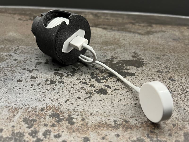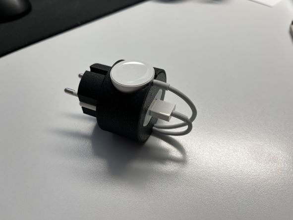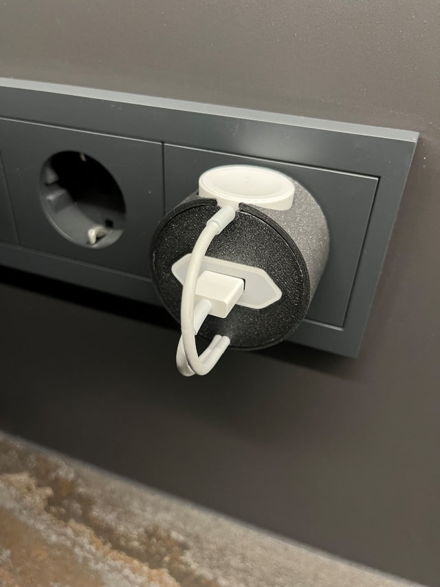 Dette er en ladestation specifikt designet til din Apple Watch. Den er perfekt til at holde dit ur organiseret og beskyttet, mens det oplades. Den er kompatibel med europæiske stikkontakter og er let at samle. Med mulighed for at dække kabel med det medfølgende kabeldække, sikrer du optimal beskyttelse og orden. Du skal blot indsætte USB-strømstikket, rulle dit kabel op som vist i billedet, indsætte ladepuden, og din Apple Watch Dock V2 er klar til brug.