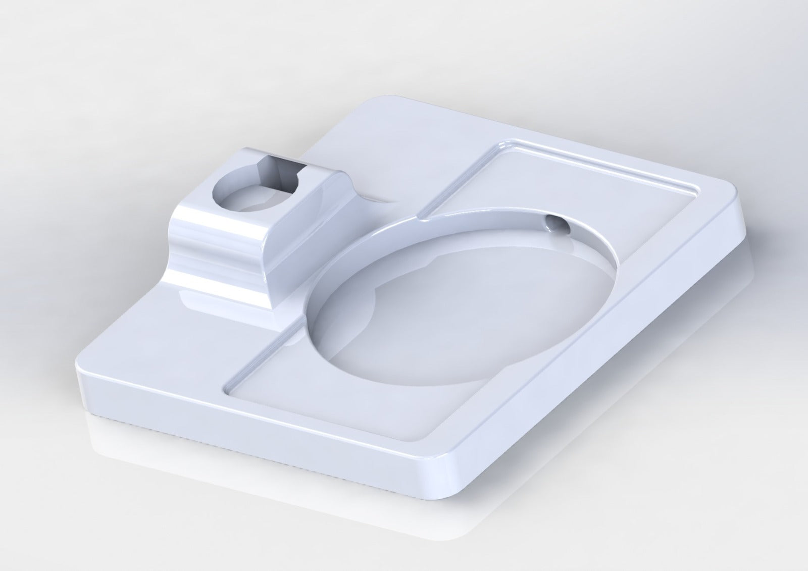 Dette produkt kan bruges som en dockingstation til Apple Watch oplader, kombineret med en Qi trådløs oplader. Den understøtter opladere med en diamenter på op til 100mm, og er udstyret med indbyggede kabelguides. Skal printes med støtte på grund af overhæng i kabelguideområdet.