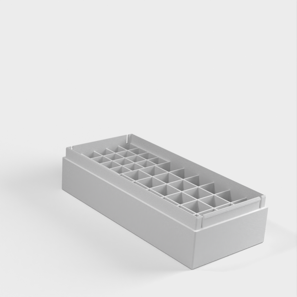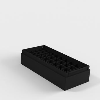 Batteri kasse med plads til 24 AA- og 20 AAA-batterier. Genopladelige batterier er lidt tykkere end ikke-genopladelige batterier, denne kasse kan sagtens rumme begge typer.