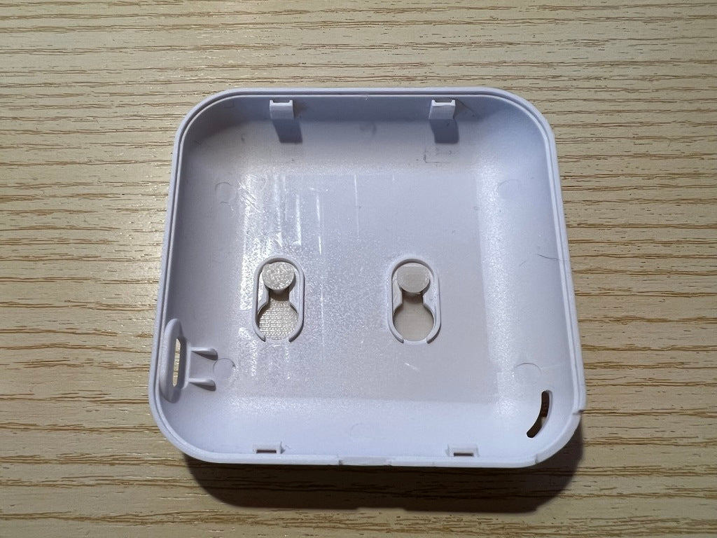 Shelly Plus H&T vægholder / bagplade er designet til at være så tynd som muligt, samtidig stærk nok til at holde din Shelly-enhed. Du kan bruge en stærk dobbeltklæbende tape, såsom den medfølgende 3M, til at fastgøre din Shelly til væggen og nemt fjerne den, når du skal skifte batterier.