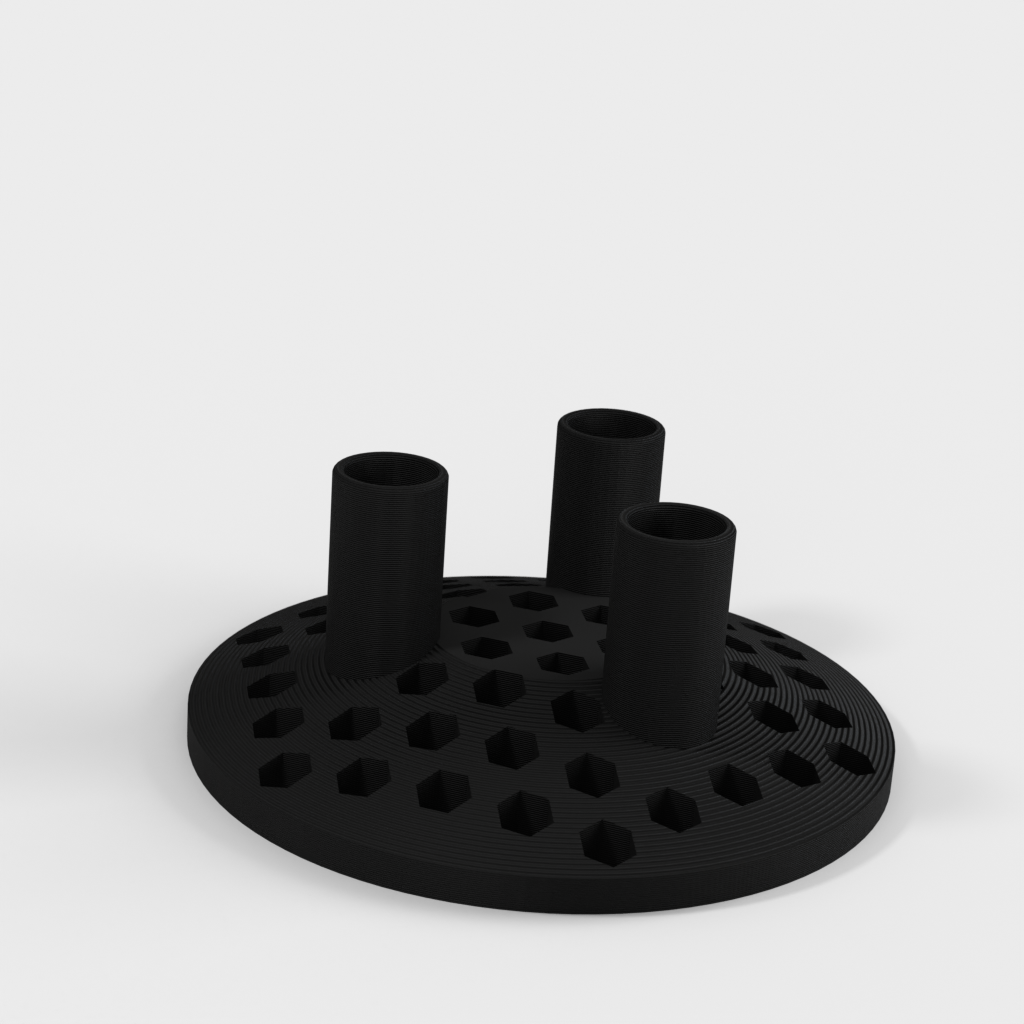 Holderen sikrer, at dine Oral-B iO tandbørstehoveder opbevares hygiejnisk og ventileret, hvilket bidrager til en renere og mere ryddelig atmosfære på badeværelset. Det diskrete hexagonmønster tilføjer et moderne og æstetisk touch til indretningen, mens dens funktionelle design gør den til et ideelt supplement til din daglige rutine.
