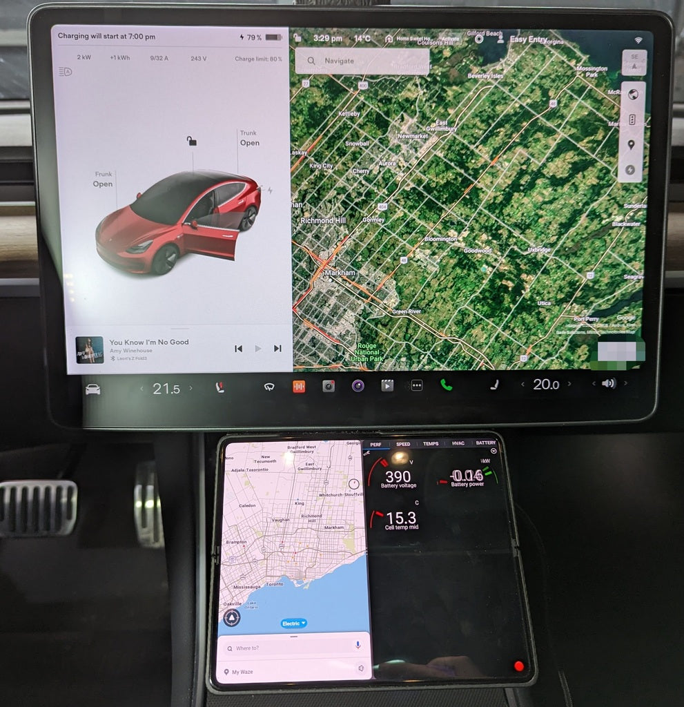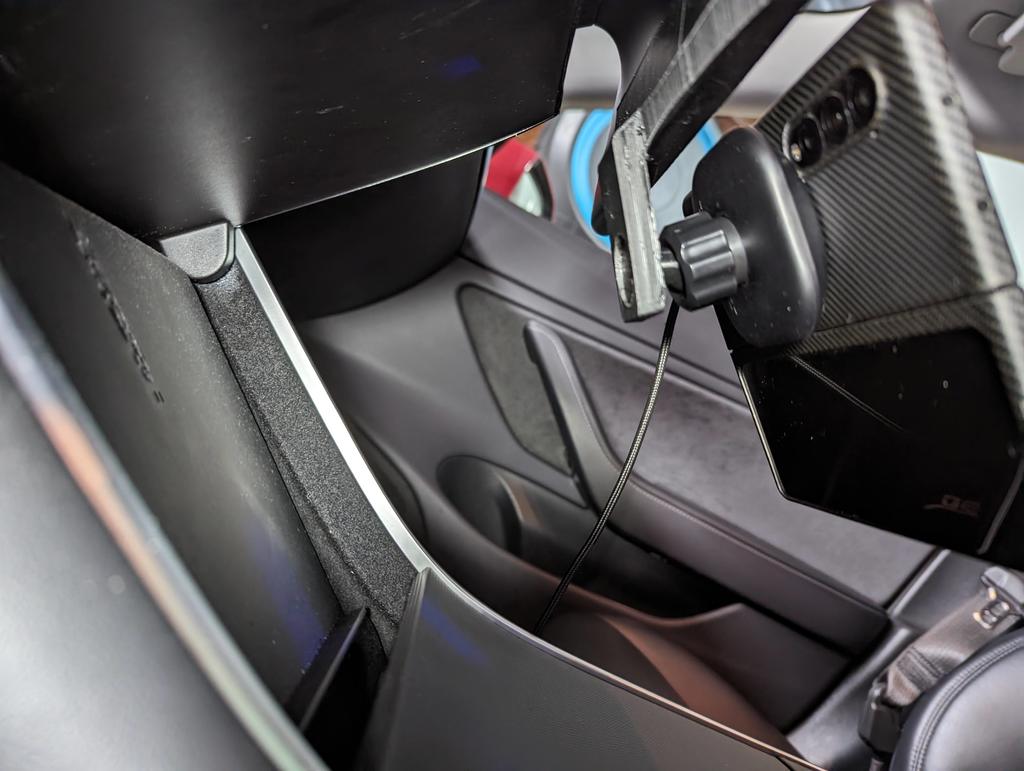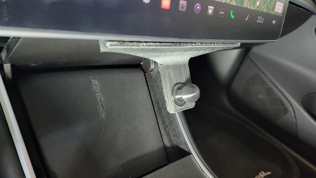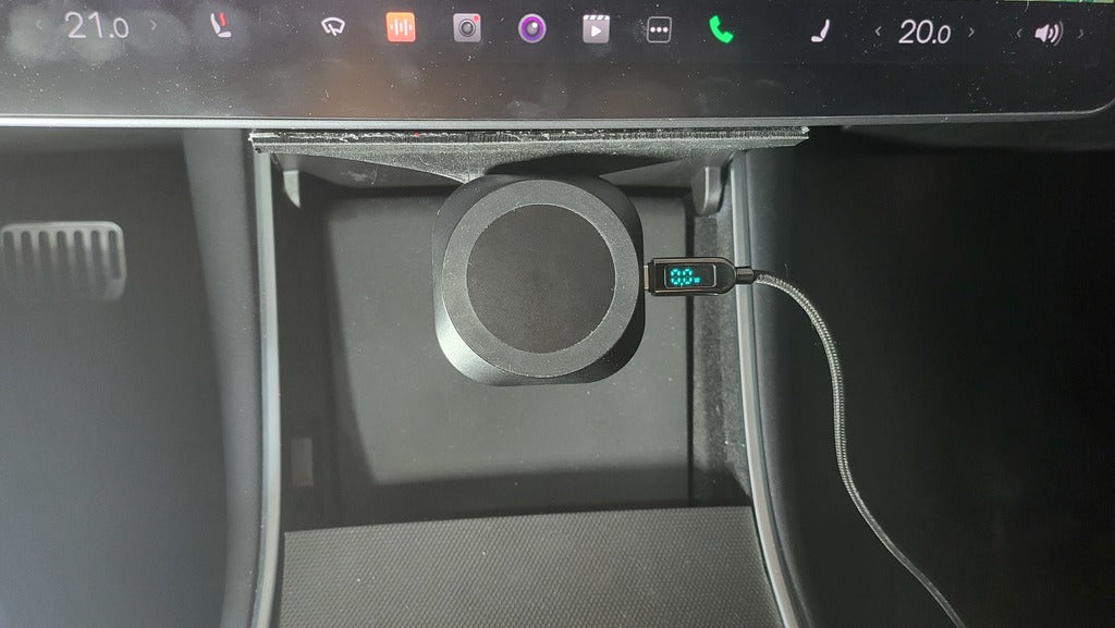 MagSafe telefonholder til Tesla Model 3/Y, der nemt fastgøres til bagsiden af ​​skærmen ved hjælp af dobbeltklæbende tape. Denne elegante holder blokerer ikke for opbevaringsrummet, men dækker den luge, der normalt dækker den originale telefonholder. Den kan bruges både med eller uden kugleled. Kompatibel med Galaxy Fold 3 ved brug af et modificeret etui, så det fungerer med MagSafe-opladere, men skulle også virke med andre MagSafe-telefoner.