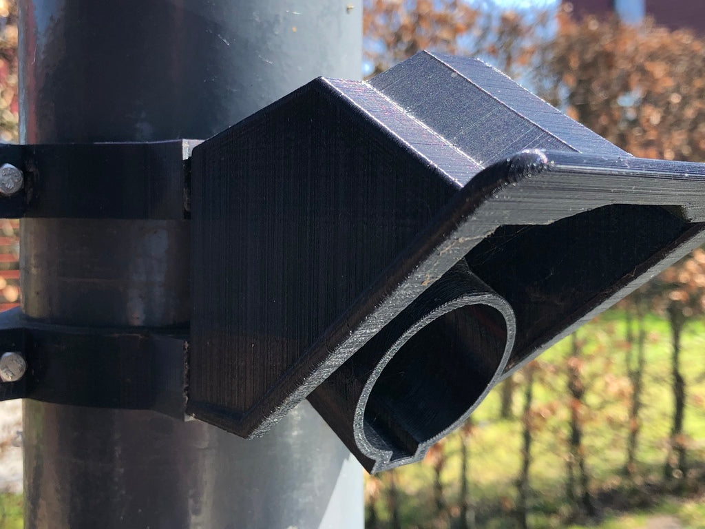 Produktet er konstrueret med henblik på at skærme ladestikket mod nedbør, især sidelæns regn, hvilket kan bidrage til at forlænge kablets levetid og opretholde en pålidelig funktion under alle vejrforhold. De robuste pælklemmer er designet til sikker og stabil montering på en 110mm carportpæl eller ladestanderpæl, hvilket gør installationen ligetil.