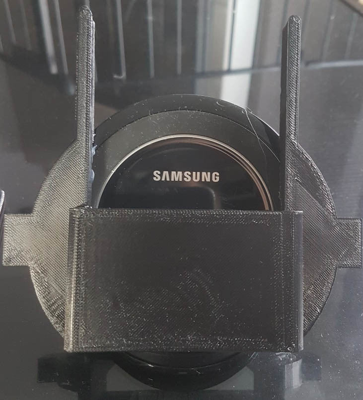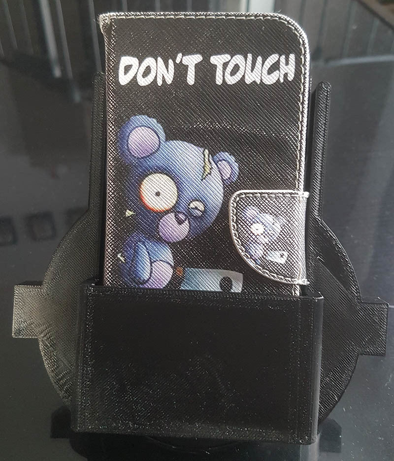 En Tesla Model S Qi trådløs opladerholder til Samsung telefoner. Denne enhed fungerer som en enkel telefonholder, som du kan fastgøre til en Qi-opladningsplade. Den er designet til perfekt at passe ind i Tesla Model S konsollen. Den er specifikt kompatibel med "Samsung Fast Charge" -opladeren, men kan nemt justeres til andre Qi-opladningsplader.