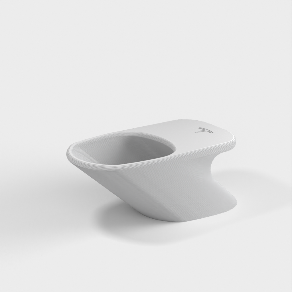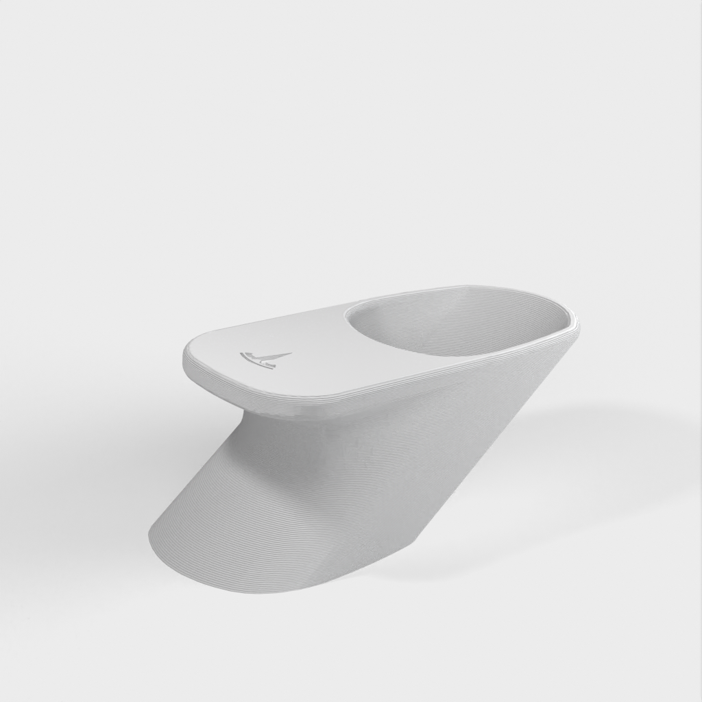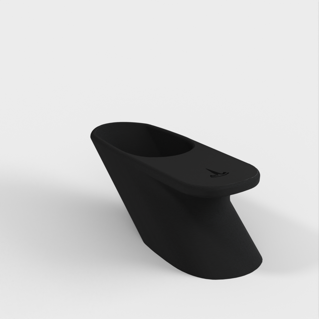 En let modificeret version af Tesla Vægtilslutning Kabel-organisator med et lille indviklet logo. Denne version har ingen tekst.