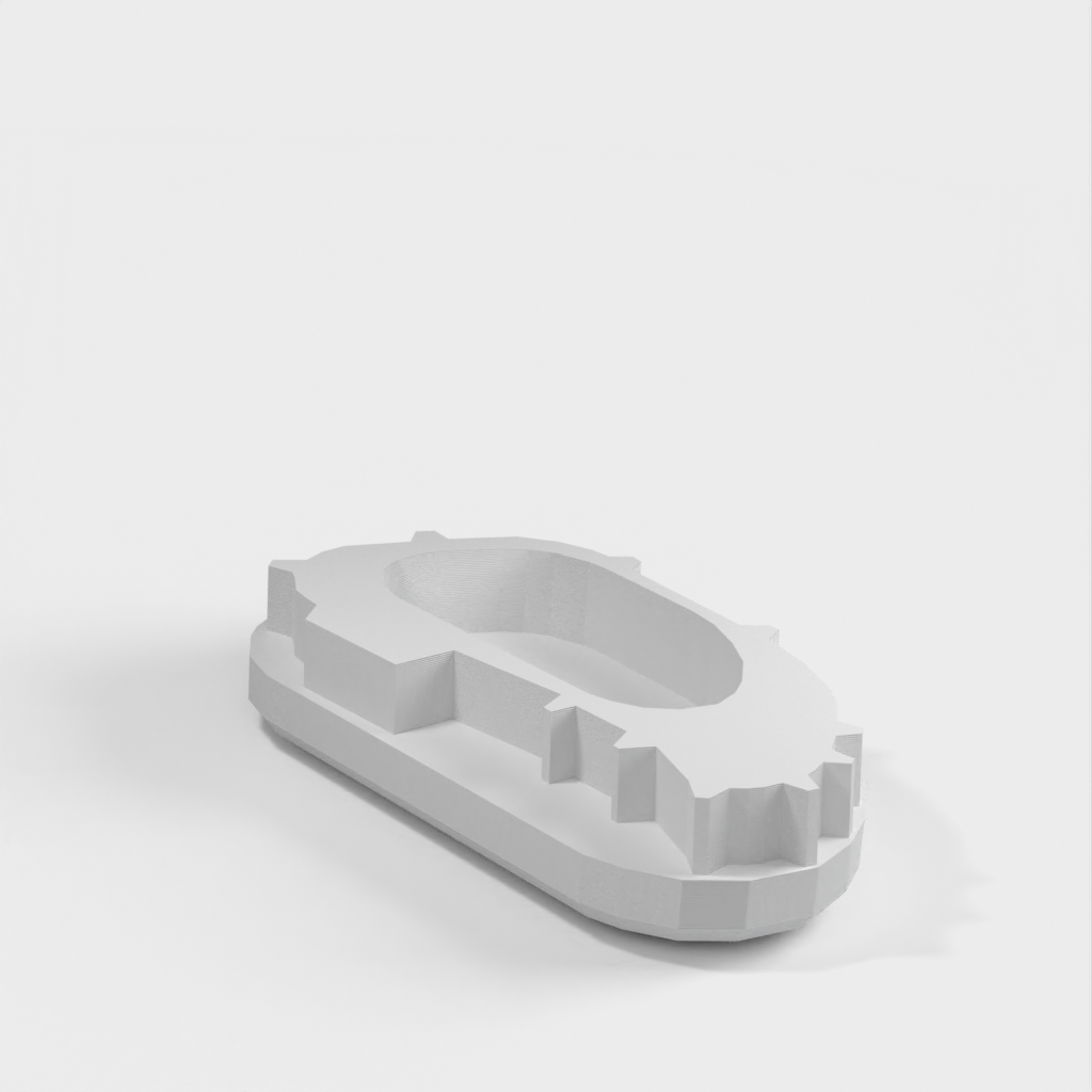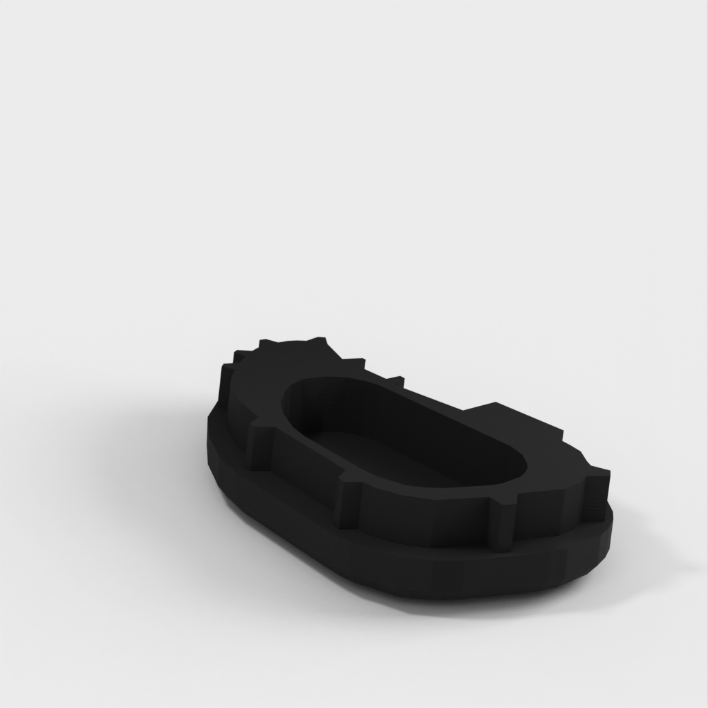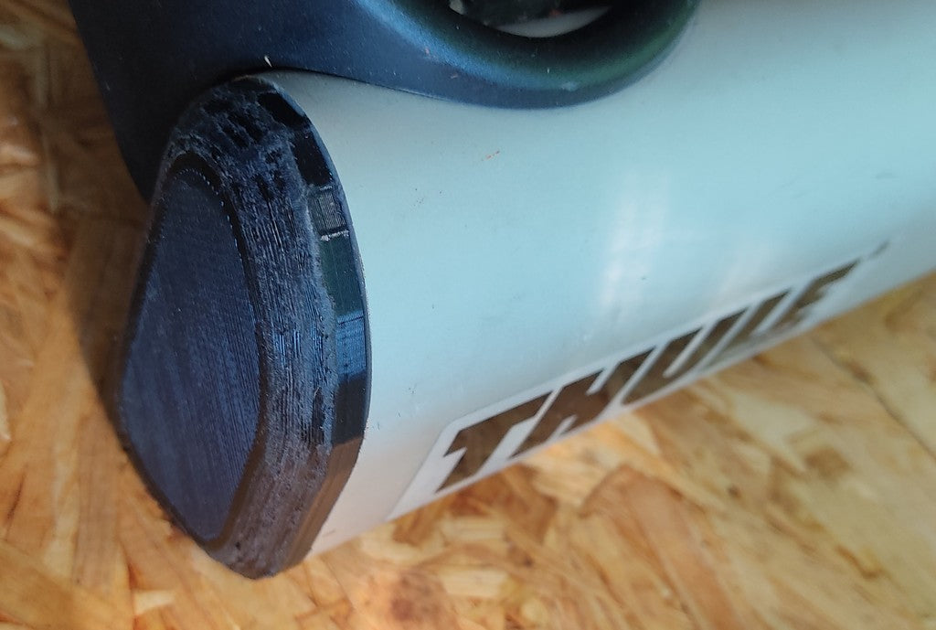 Udskiftelig endekappe til et Thule Euroclassic G5 908/909 og 928/929 cykelstativ til bil. Denne endekappe er designet til at erstatte tabte eller ødelagte endekapper, og garanterer en perfekt integration med stativets design og stil. Vi anbefaler at bruge PETG eller ABS materialer for at sikre holdbarhed, da PLA kan smelte under direkte sollys. Installationen er enkel ved blot at spejlvende .stl-filen i sliceren til den anden side.