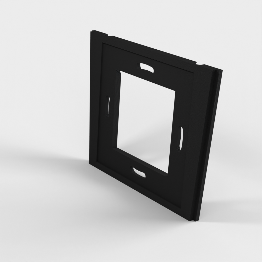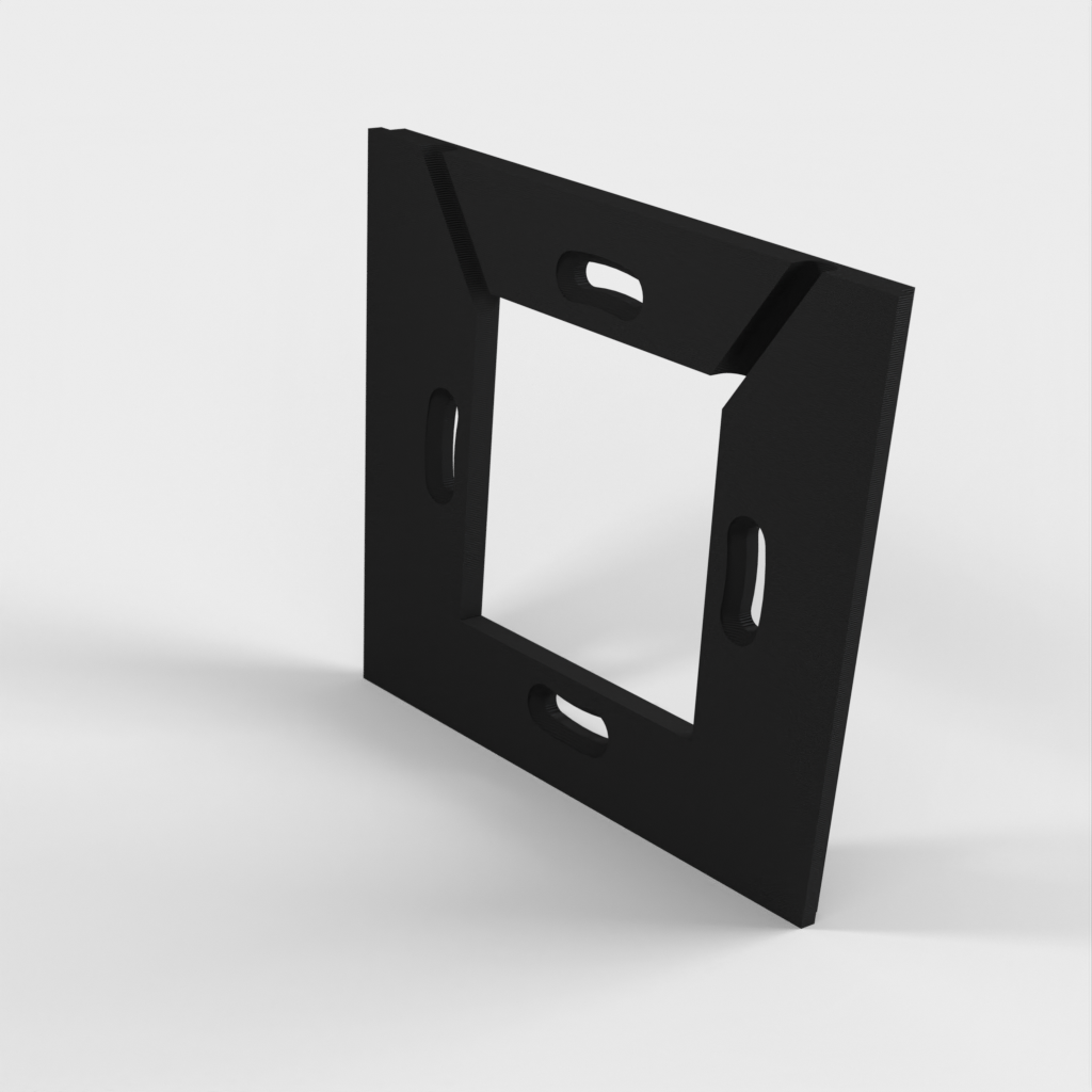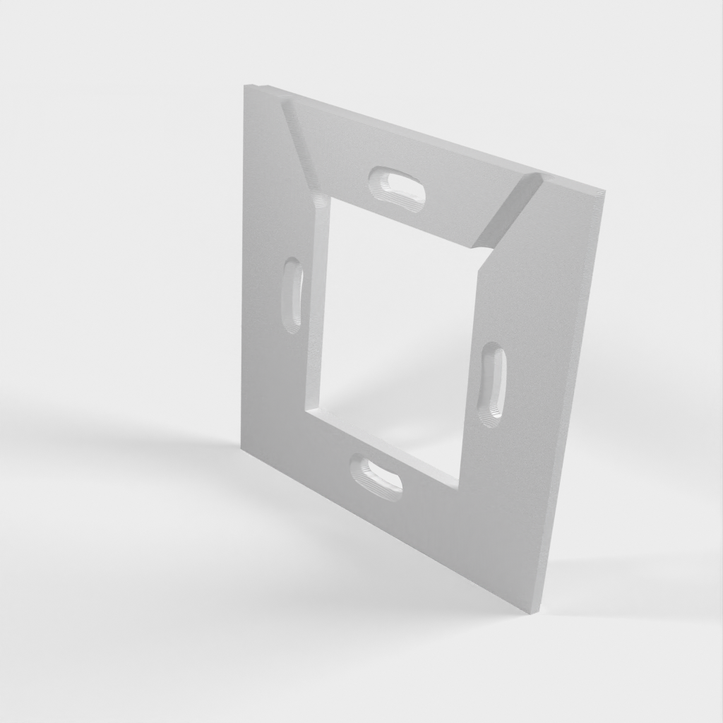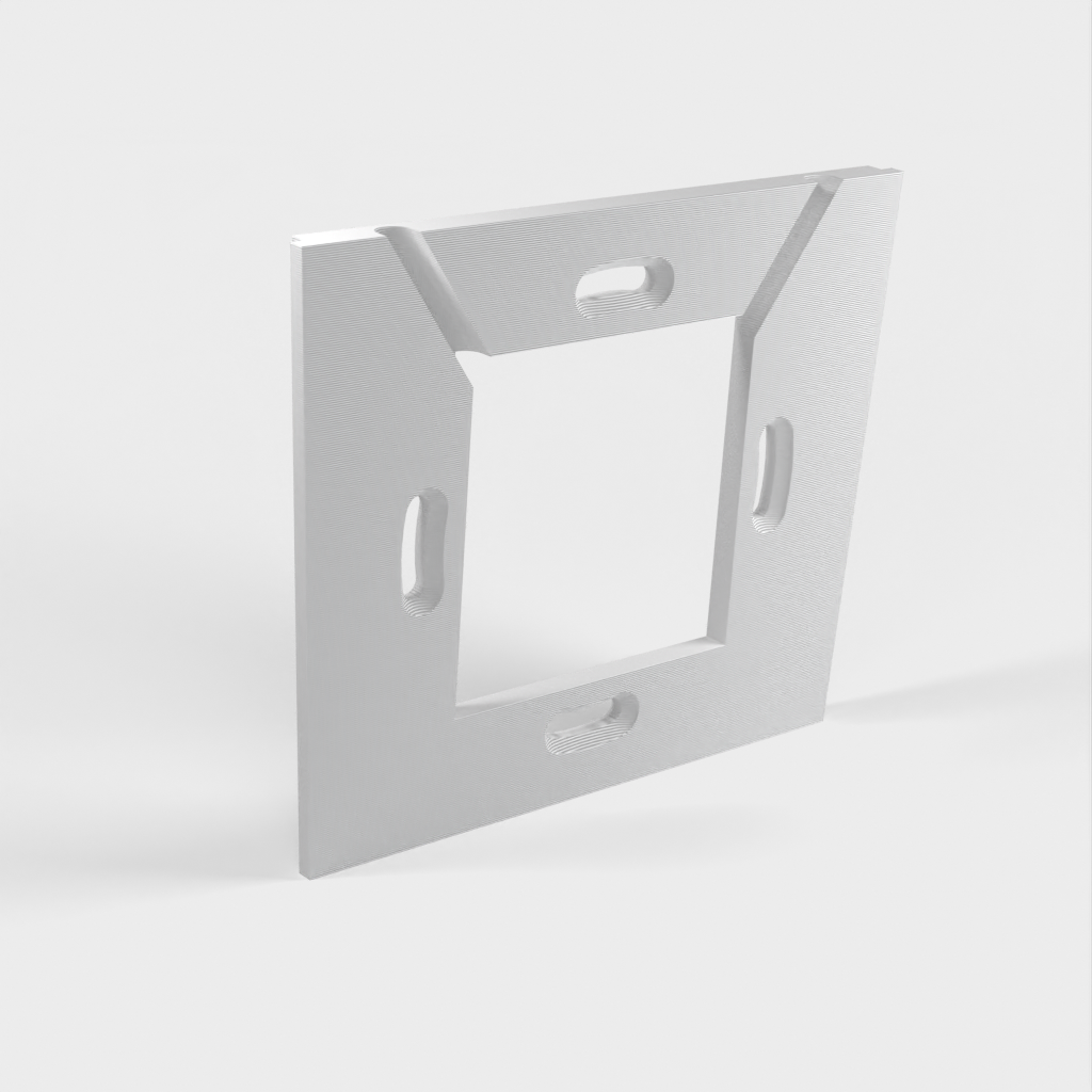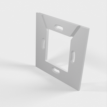 Vægpladen til opladere er designet til opladere, der passer i en standard 60mm klemrørskasse. Den anden vægplade har 4mm huller placeret 70mm fra hinanden til nedsænkede skruer. For begge plader er det vigtigt, at skruerne ikke stikker ud over overfladen, da de ellers vil kontakte og ridse tabletten.