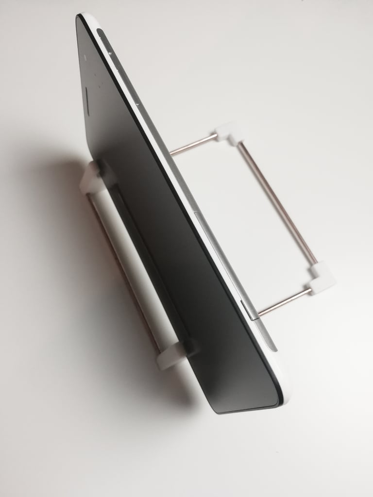 - Kan tilpasses i størrelsen for at understøtte forskellige tablets og telefoner via justerbare metalstænger.