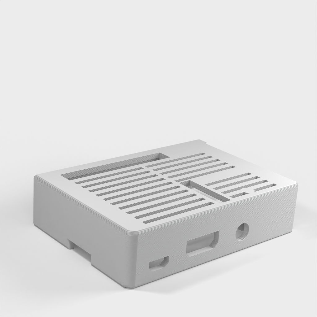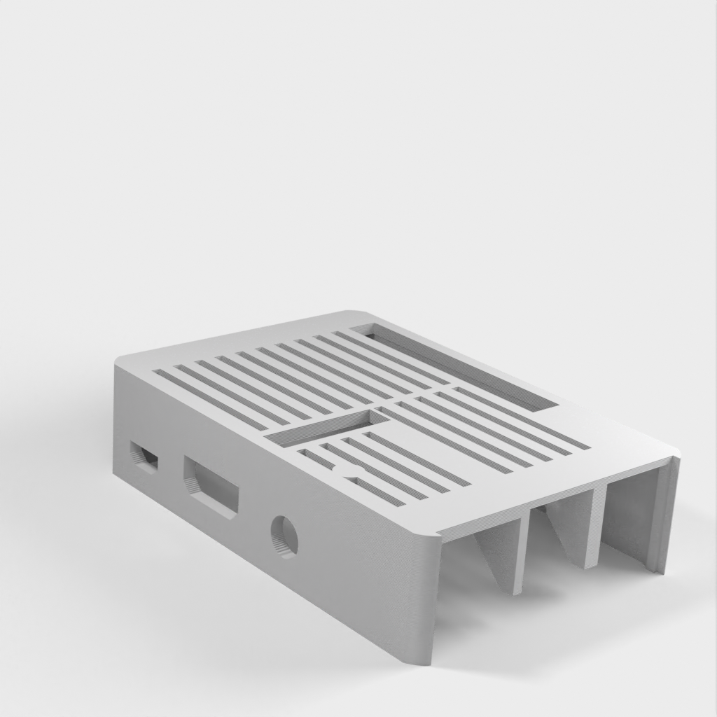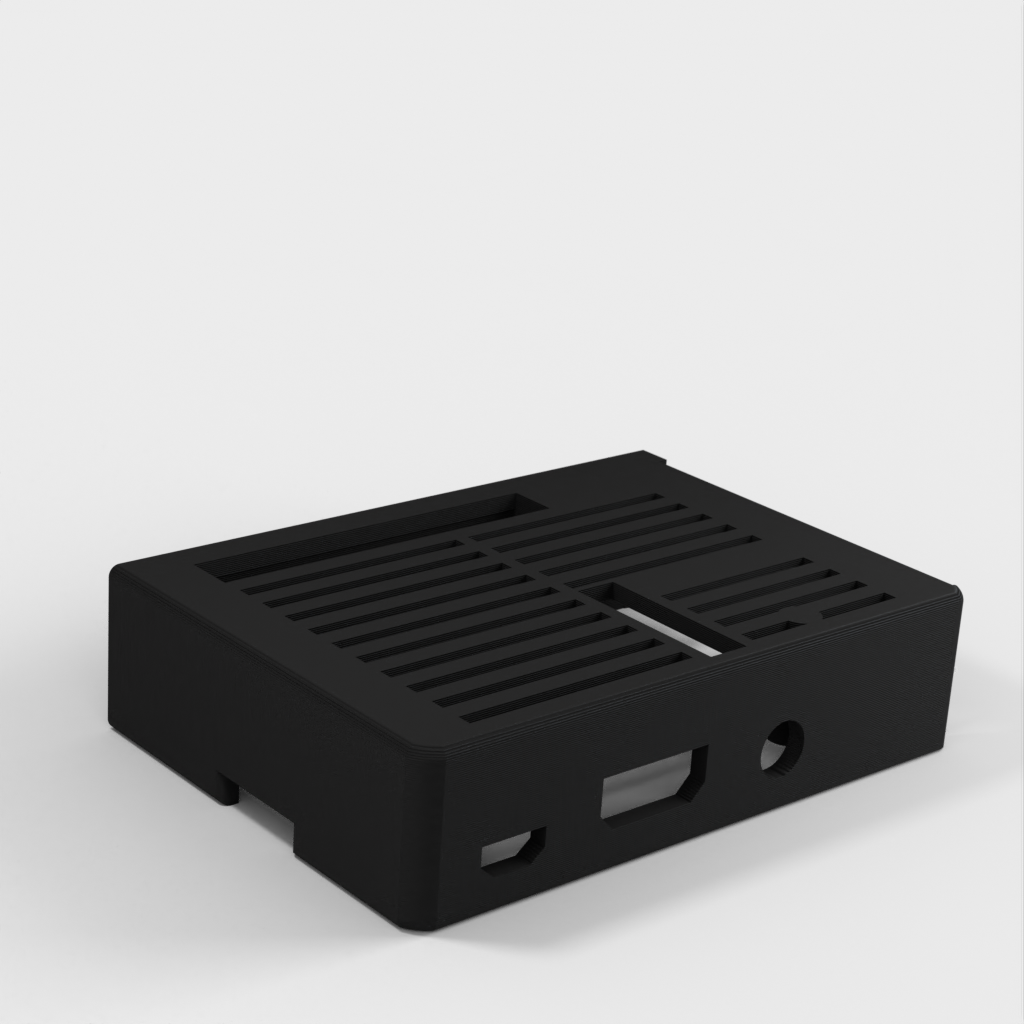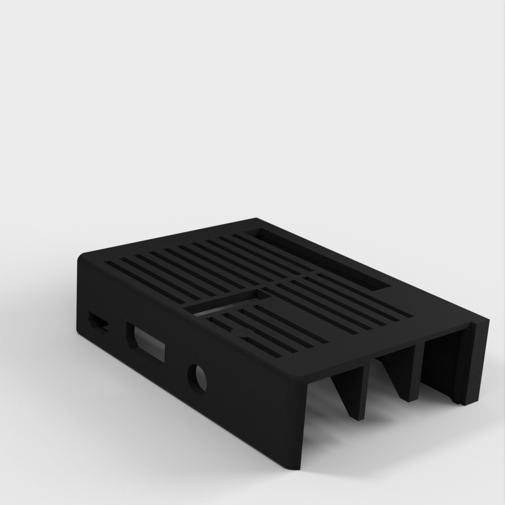 Dette er en kabinet til Raspberry Pi 3 B+, der passer perfekt med ekstra køleelementer. Kabinettet tillader let adgang til kamera og GPIO headers, og yderligere rum for de ekstra køleelementer.