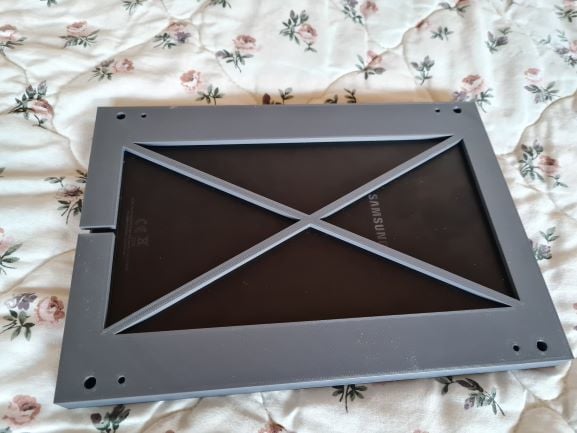 Tablet holder til Samsung Galaxy Tab A 8.0 (2019). Brug den til at lave dit eget smart home dashboard. Vægmonteringen er lavet af to dele, der skrues sammen med m3x8mm skruer. Den er designet til fladhovedskruer, så de sidder flush med låget. Perfekt til smart hjemmestyring og organisering af dine elektroniske enheder.