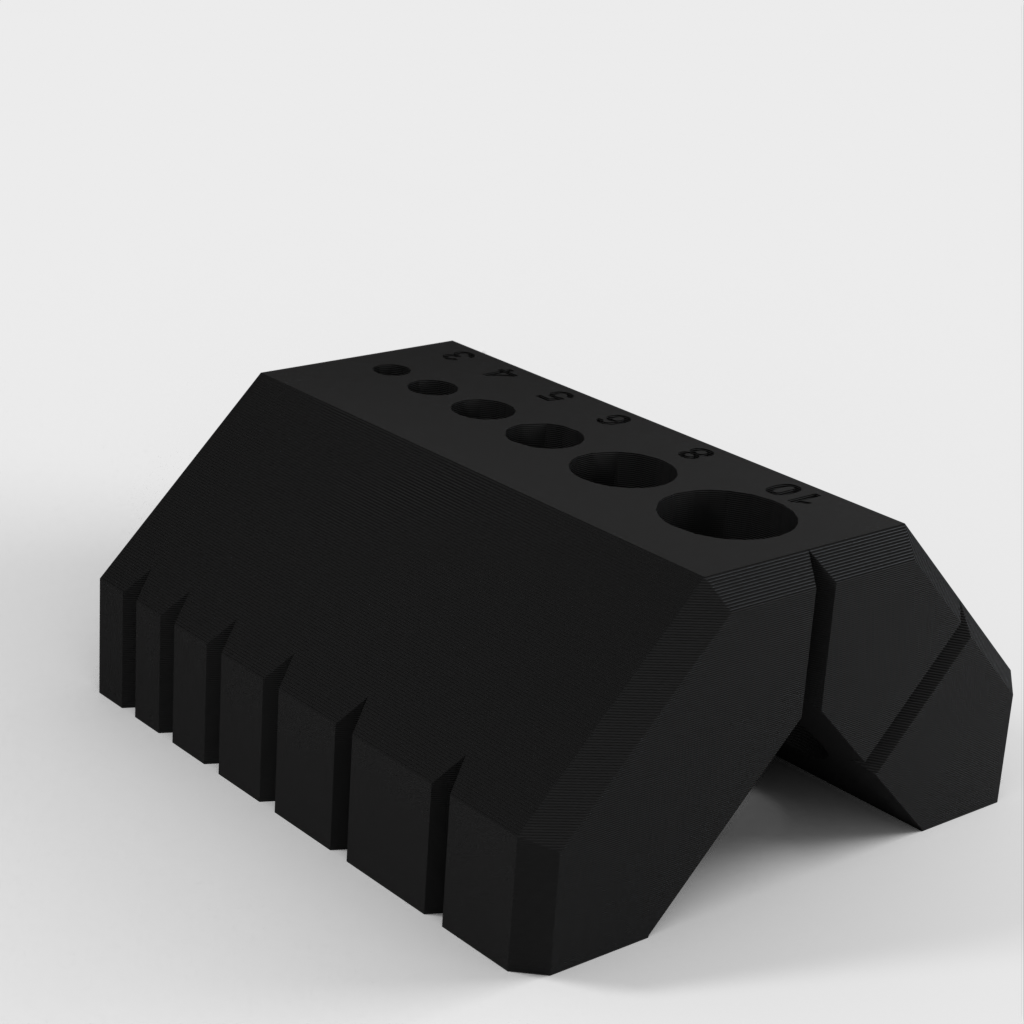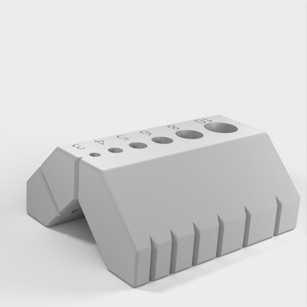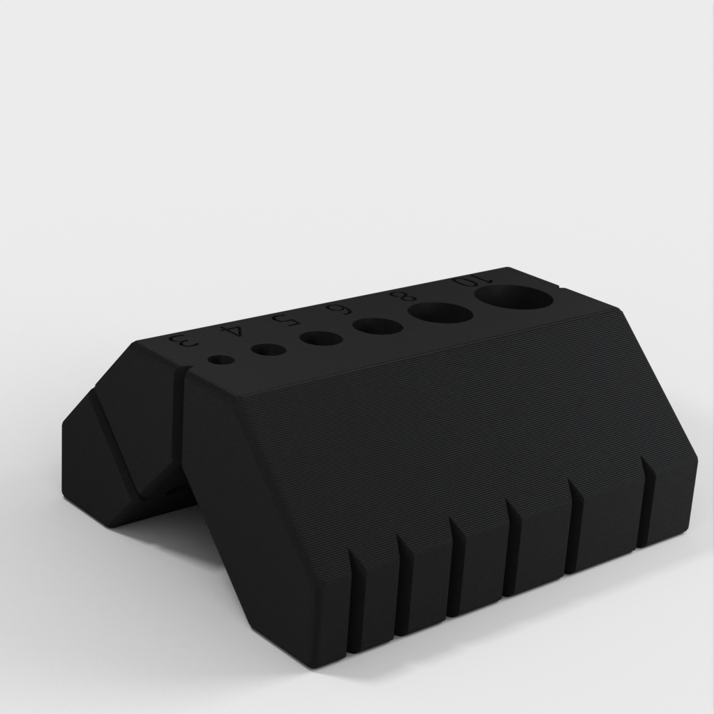 Dette brugervenlige 90 og 45 graders boreguide er designet til at gøre det nemt for dig at bore på kanter og stænger. Den indeholder også en specialfunktion, der tillader dig at bore perfekt placeret i midten af ​​2 cm træ.
