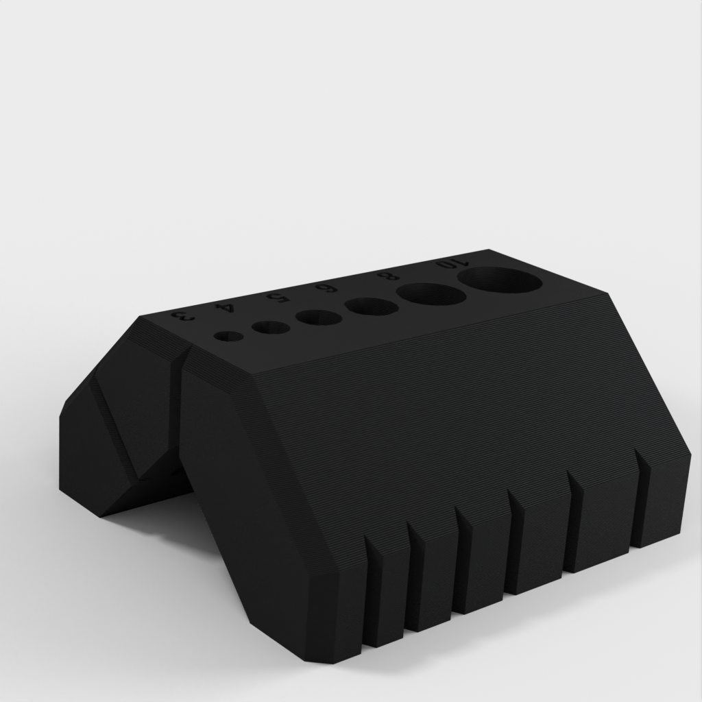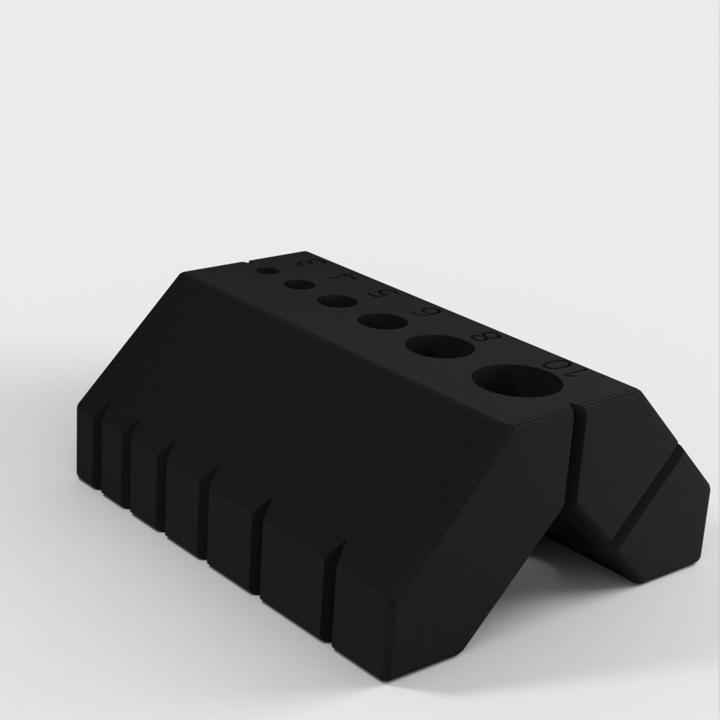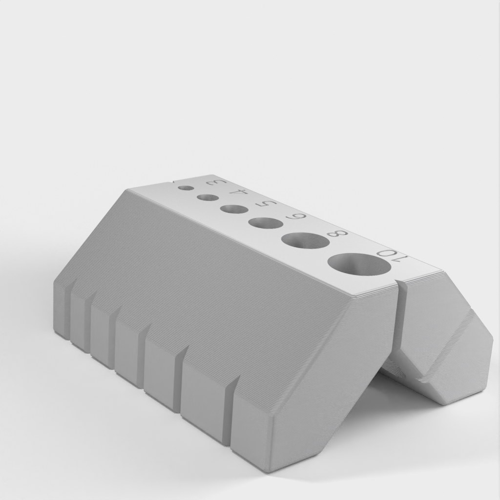 Dette brugervenlige 90 og 45 graders boreguide er designet til at gøre det nemt for dig at bore på kanter og stænger. Den indeholder også en specialfunktion, der tillader dig at bore perfekt placeret i midten af ​​2 cm træ.