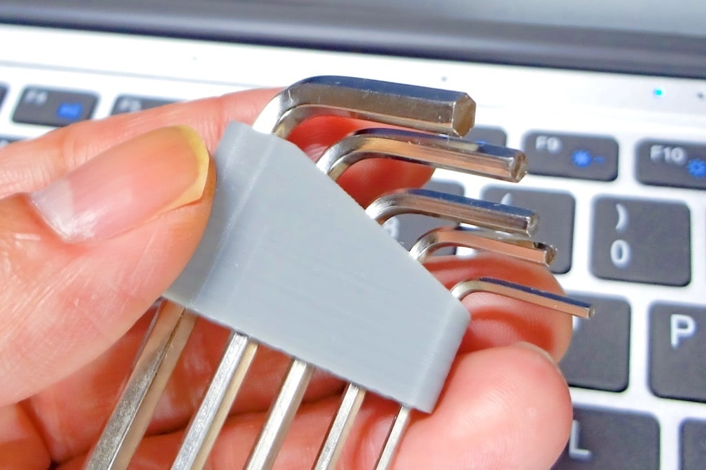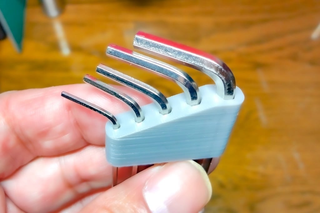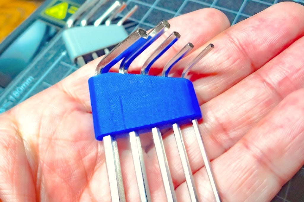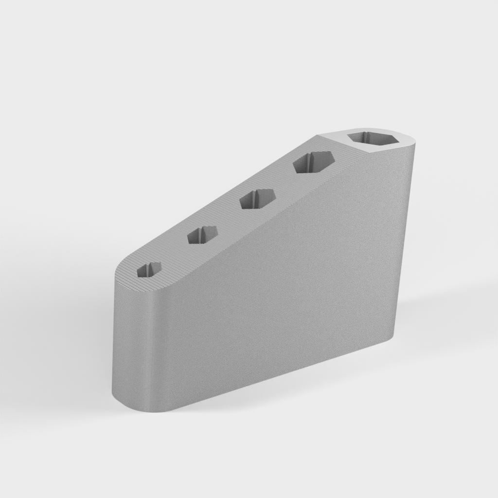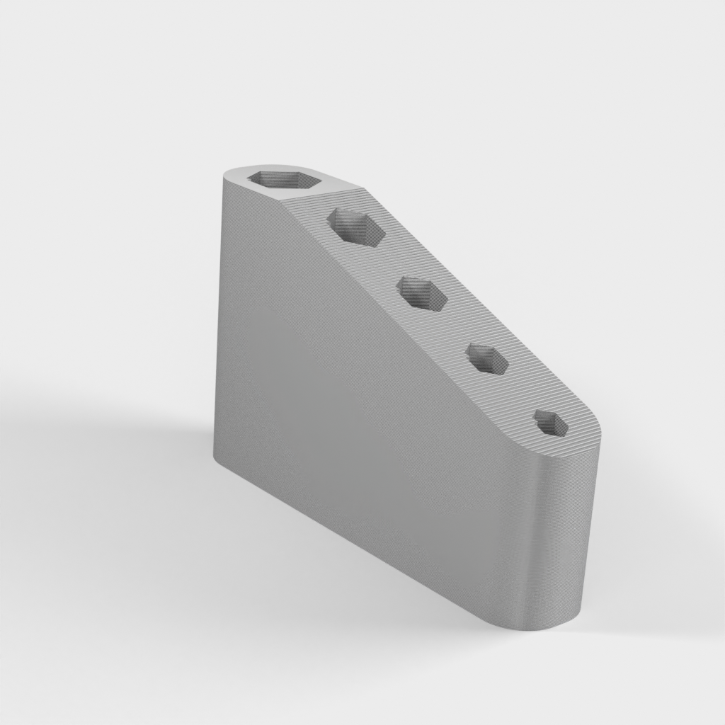 Enkel og kompakt hex nøgleholder. Denne lille hexagon nøgleholder kan opbevare i alt 5 hexagon nøgler (1,5 mm / 2,0 mm / 2,5 mm / 3,0 mm / 4,0 mm), der medfølger en generel 3D-printer. Den er kompatibel med Ender3 V2, Artillery Genius, Kingroon KP3S osv.