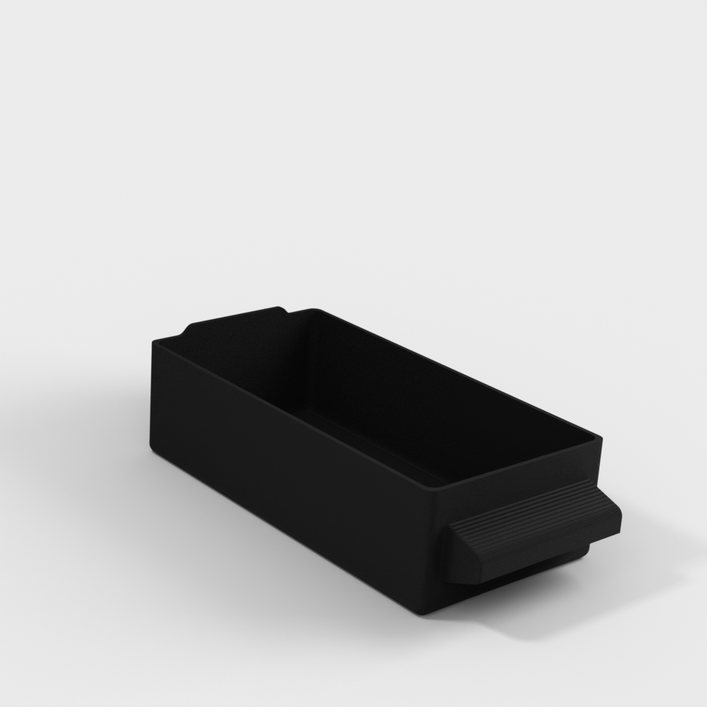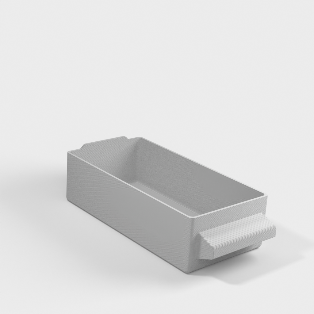 Med ydre dimensioner på cirka 128x36x65 mm er skuffen velegnet til effektiv pladsudnyttelse. Den er en funktionel tilføjelse for dem, der søger en struktureret opbevaringsløsning til smådele i værkstedet, hobbyrummet eller kontoret.