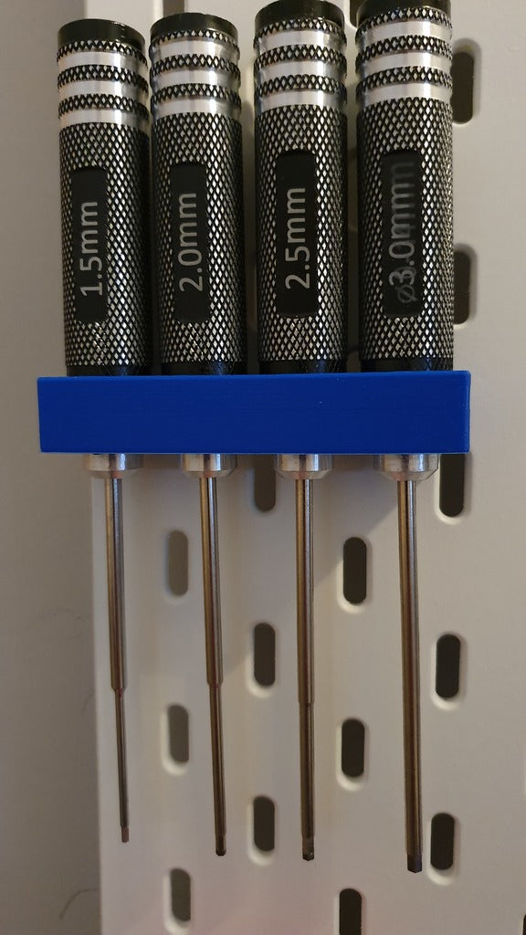 Hex skruetrækkerholder til Ikea Skadis. Denne holder gør det nemt at organisere din arbejdsplads eller værksted. Den er nem at montere direkte på et Skadis-panel, hvilket gør din arbejdsplads mere organiseret og ryddelig. En praktisk tilføjelse til ethvert værksted eller kontor.