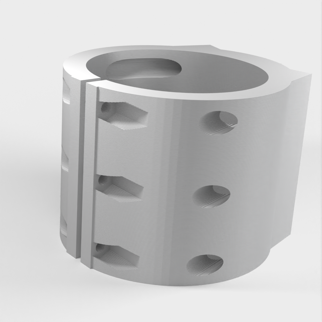 Dette er en optimeret Makita RT0701C montering til MPCNC, designet til at placere Makita så tæt på z-aksen som muligt uden at ofre stabilitet eller gøre installation eller justering besværlig. Denne montering bruger standard monteringspladen fra Allted, hvilket placerer endmøllen kun 45mm fra den universelle monteringsplade, ca. 1,5 mm tættere på aksen sammenlignet med standard DW660 monteringer. Der kræves 9 x 6-32 3/4" maskinskruer og 9 x 6-32 nylock møtrikker for at montere dette produkt.