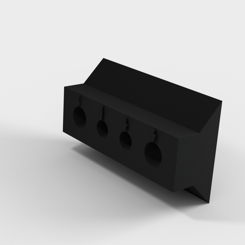 Hold styr på dine Parkside Deark bits med denne smarte stander. Standeren er designet til bits med en diameter på 8-20 mm, dækker et område fra 4-12 mm, og kan indeholde 6 mm træfræsere samt 12,4 mm forborene til både metal og træ.