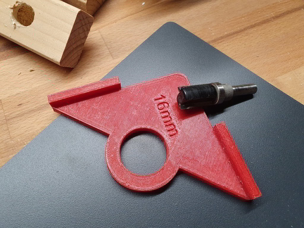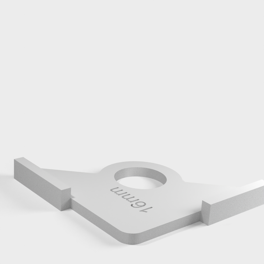 Routerhjørne Skabelon (metrisk) er en skabelon, der hjælper i træbearbejdningsprojekter. Denne skabelon kan bruges til at skære perfekte 16mm hjørner ved hjælp af en router, hvilket er særligt nyttigt ved opbygning af et routerbord med en brugerdefineret routerplade. Med denne skabelon kan du sikre, at din router-bit passer perfekt til trim på dit bord.