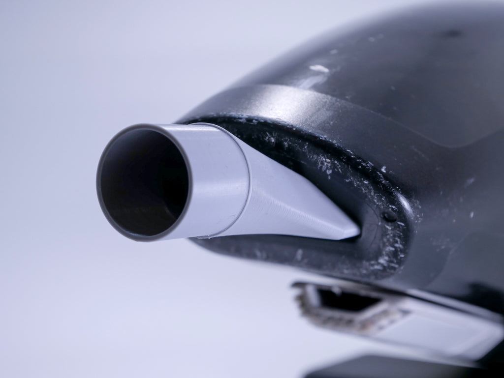 Adapter for a Ryobi ONE+ cordless vacuum cleaner so it can use the hose from the Ryobi 18V ONE+ compressor to reach hard-to-access places.
