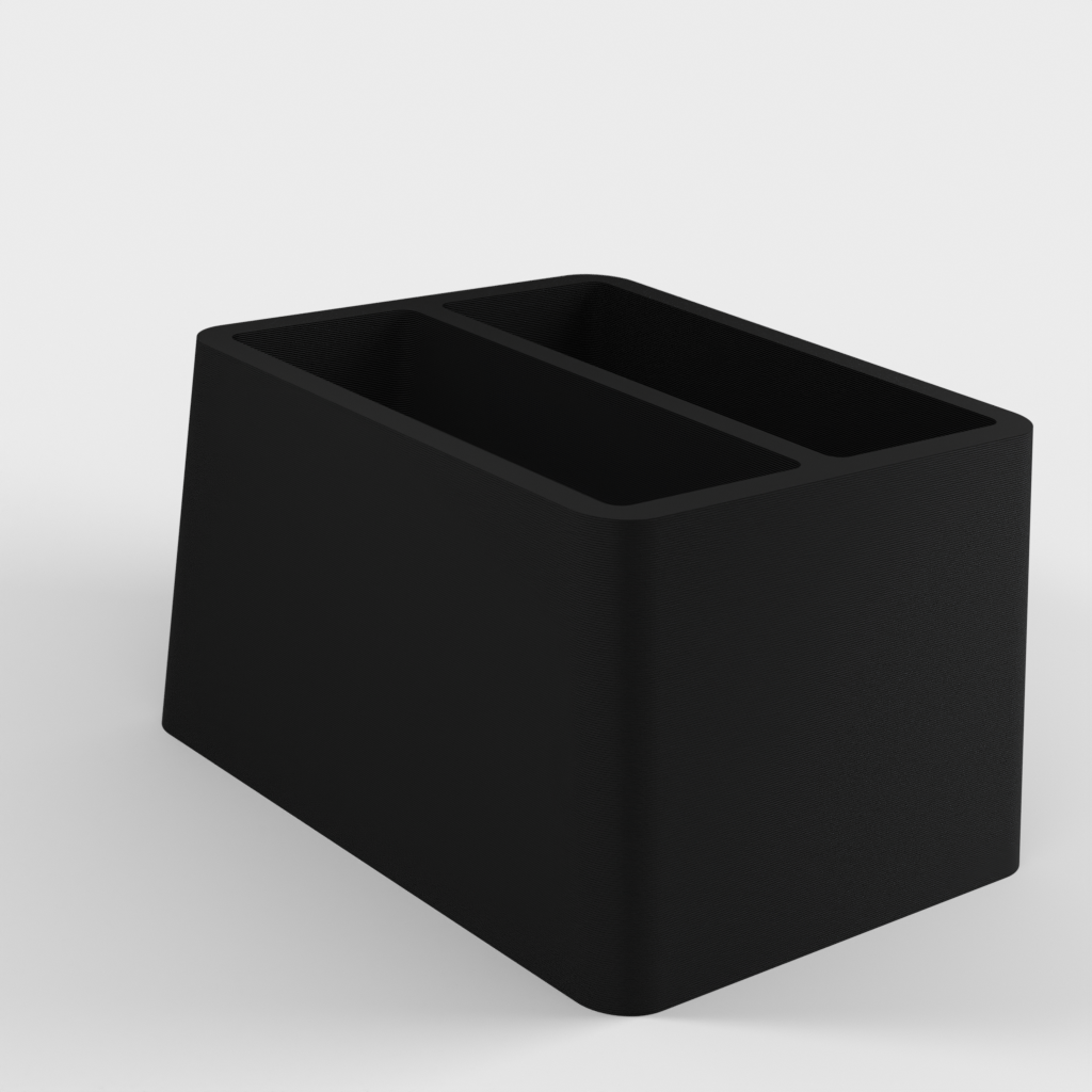 Denne universelle holder er designet til at give en praktisk opbevaringsløsning for dine TV- og soundbar-fjernbetjeninger. Med denne holder kan du nemt samle og organisere dine fjernbetjeninger på ét sted, hvilket hjælper med at reducere rod i stuen. Produktet er udstyret med en skridsikker bund, der sikrer, at holderen forbliver stabilt placeret og ikke glider rundt på overflader. Den kompakte form gør den velegnet til placering på sofabordet, tv-møblet eller en hylde, så dine fjernbetjeninger altid er inden for rækkevidde, når du har brug for dem.