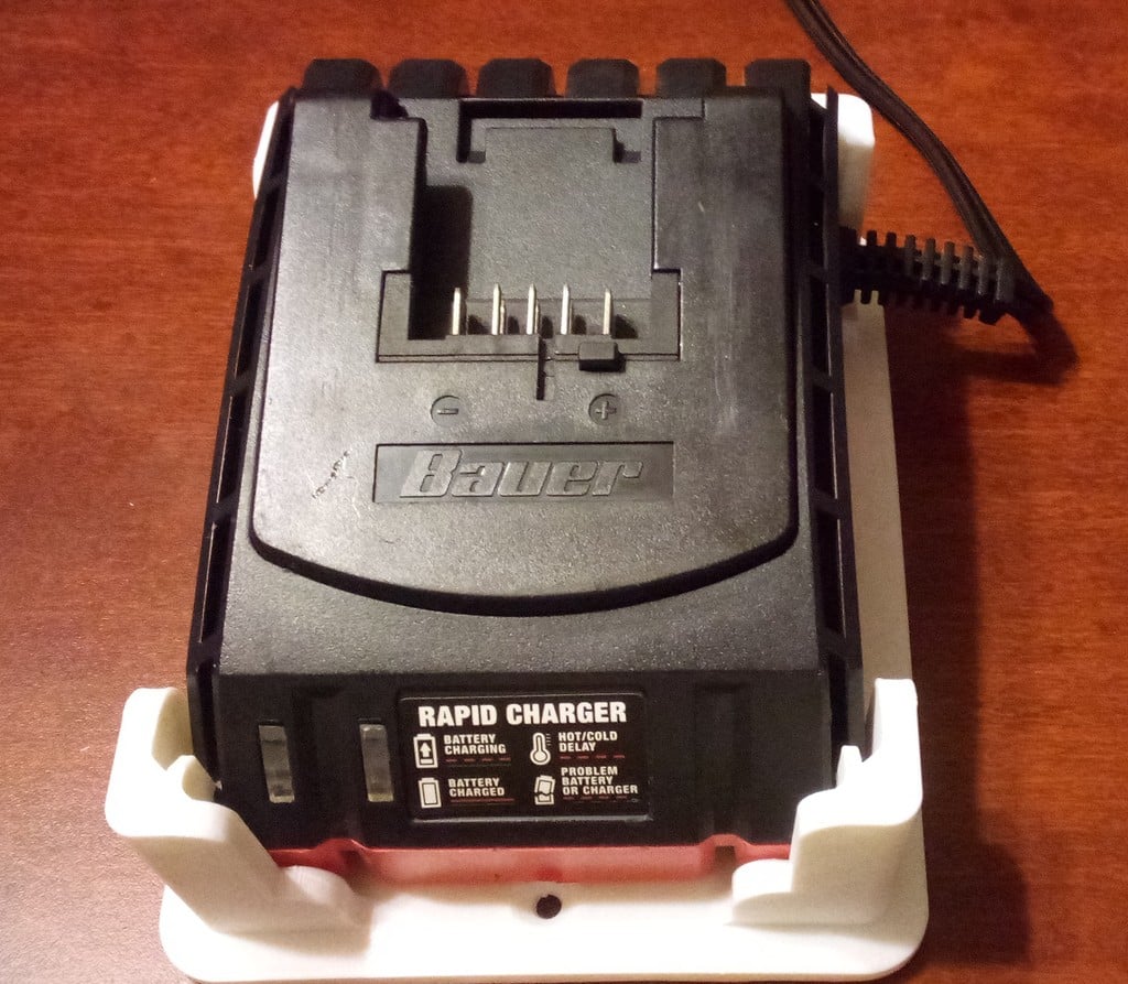 Dette er en beslag til montering af en Bauer oplader på en væg, bænk eller hyldeenhed. Bauer-opladeren har ingen indbygget monteringsindretning, så dette tilbehør hjælper dig med at holde dit arbejdsområde organiseret og ryddeligt.