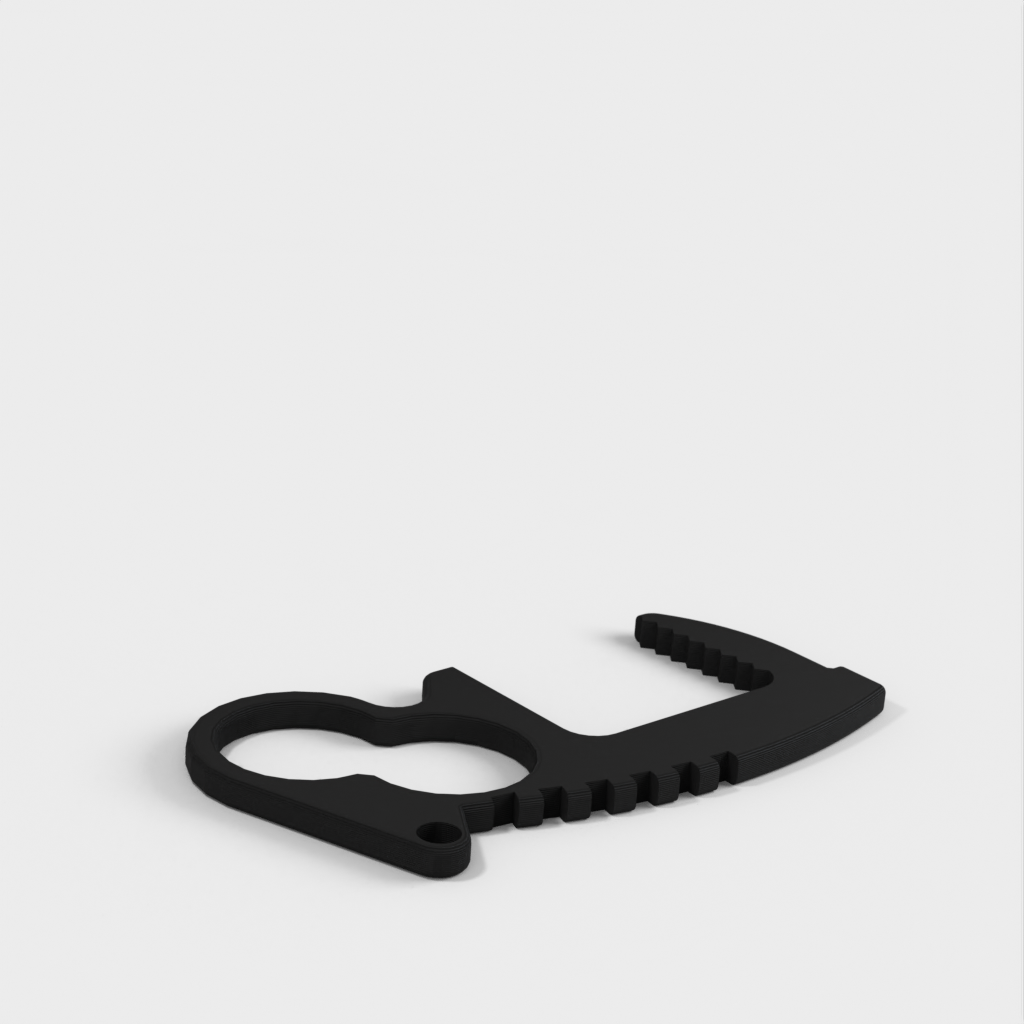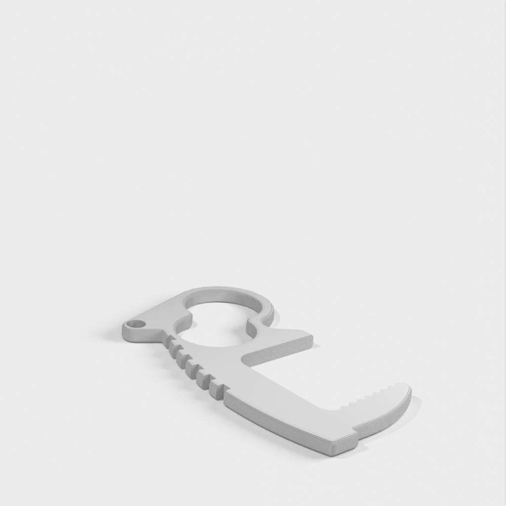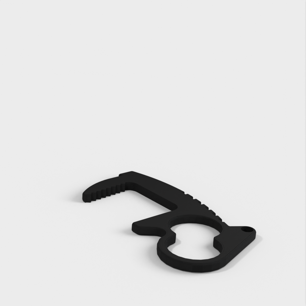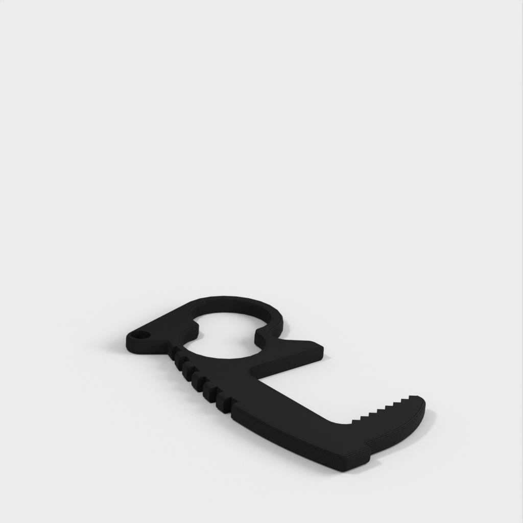 Undgå direkte kontakt med dørgreb, kontakter, tastaturer og mange andre genstande med denne berøringsfri døråbner-nøglering. Med sit unikke to hullers design giver det dig mulighed for at have fire forskellige grebstilarter. Top riste og tommelfingerhåndtag giver mere leverage end andre designs, mens den indvendige tandflade giver den nødvendige friktion for at være brugbar. Hver åbner vejer kun 4 gram, hvilket gør dem ideelle til nøgleringe, lommebrug, laptop tasker, uden at tilføje nogen mærkbar forskel i vægt. Nøgleringshullets placering er designet til at holde nøglerne sikkert i hånden og give øget leverage. Fungerer også godt i enden af et snoretræk.