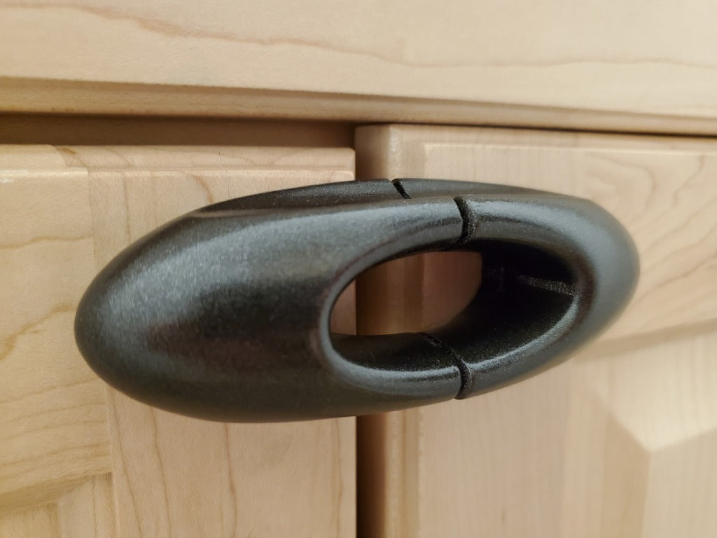 Dette er et sæt med håndtag til både skuffer og skabe. Hvert sæt indeholder tre versioner: én med et 3,2 mm "pilot" hul til træskruer, én med et hul til en #6 maskinskru, samt en "nut insert" rille, og endelig en version uden huller, så du selv kan tilføje dit eget skruehul efter behov.