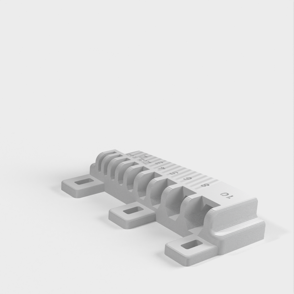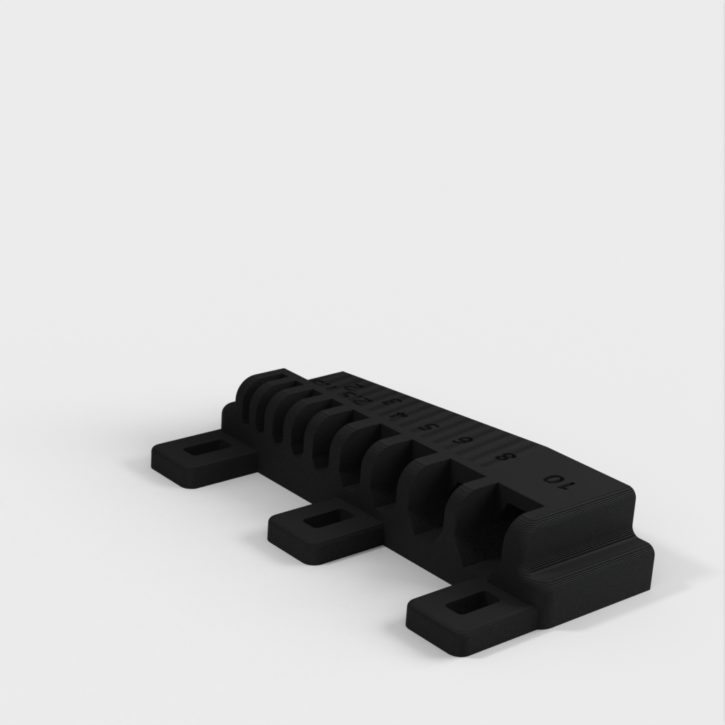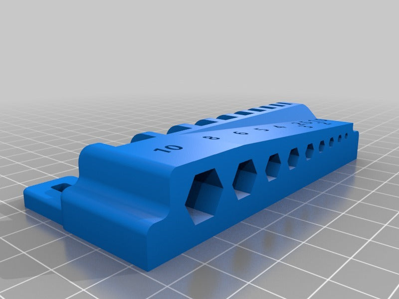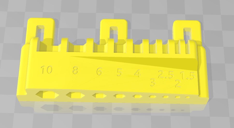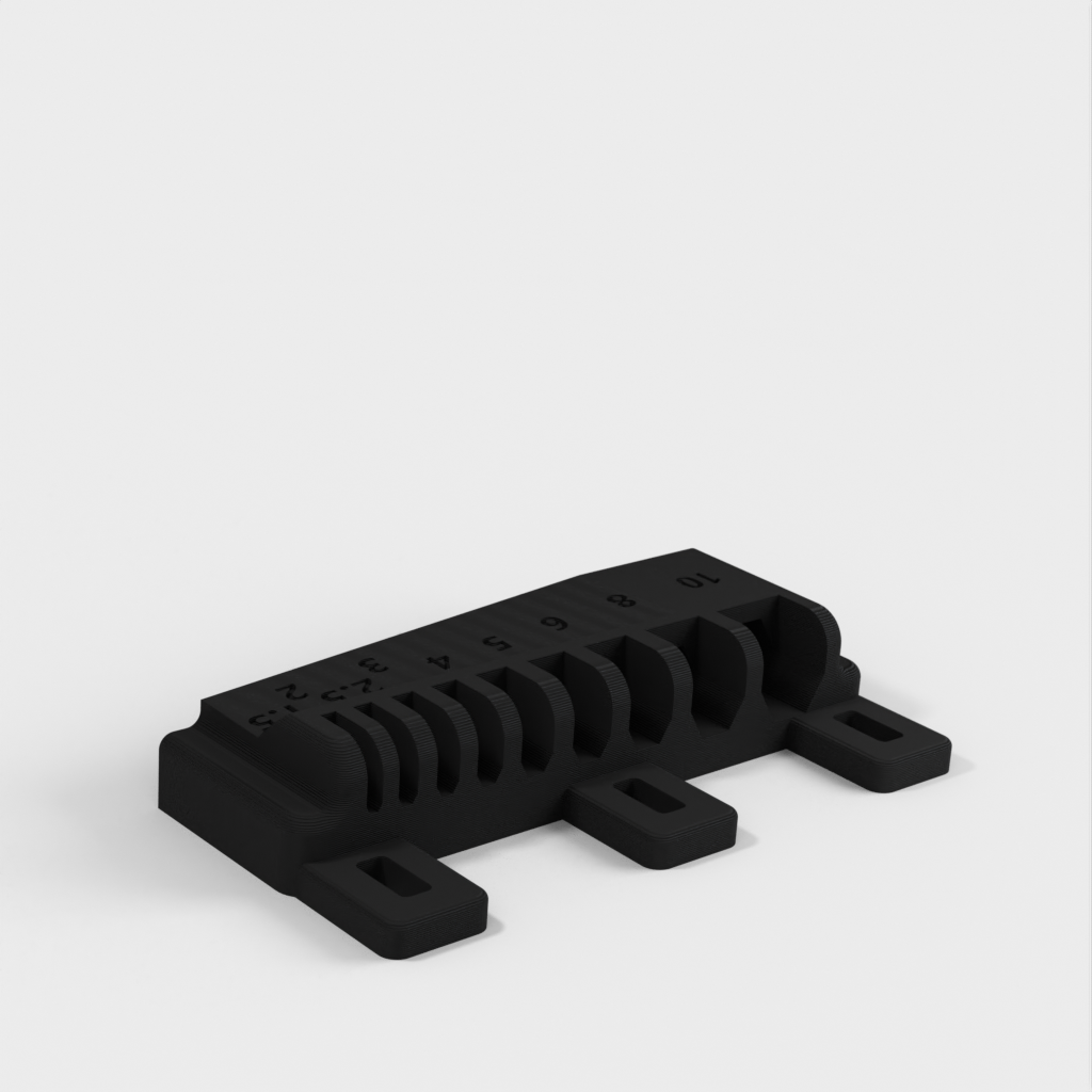 Hex key holder Skadis er et sæt nøgleholder designet til at klare hex nøgler. Det har numre til at angive størrelserne for nem identifikation og lægges nemt på ethvert IKEA Skådis/Skadis panel. Dette design er lidt mere fancy, da nogle af forsiden er skåret af i en vinkel for at spare noget materiale.