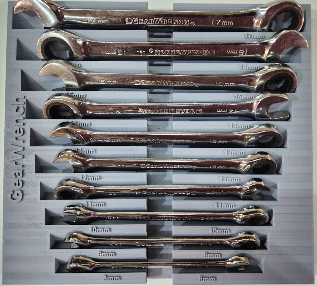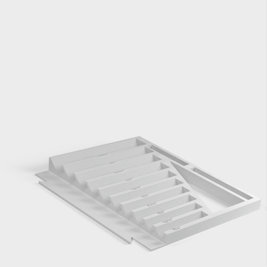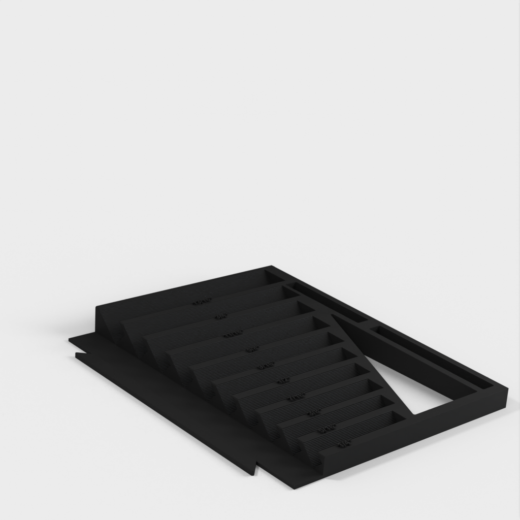 Holder til gaffelnøglesæt, så du nemt kan organisere dine værktøjer og vedligeholde orden på dit værksted. Denne praktiske holder er designet til at passe perfekt ned i en skuffe, hvilket hjælper med at holde dit værksted ryddeligt og organiseret.