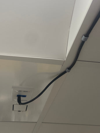 Denne lille kabelklemme er udviklet til at skabe orden og effektiv kabelstyring i miljøer med nedhængte lofter. Den giver en diskret og funktionel løsning til at føre kabler langs loftstrukturen.