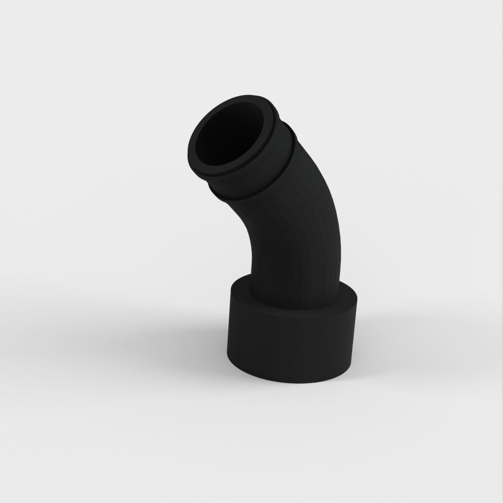 Ved senere brug af koblingen opdagede jeg, at et problem kunne opstå, hvis der ikke var tilstrækkelig plads bag saven til den stive del af støvsugerslangen. For at løse dette har jeg redesignet det med en bøjning, så det kan parres direkte til den fleksible slange og omgå den stive del.