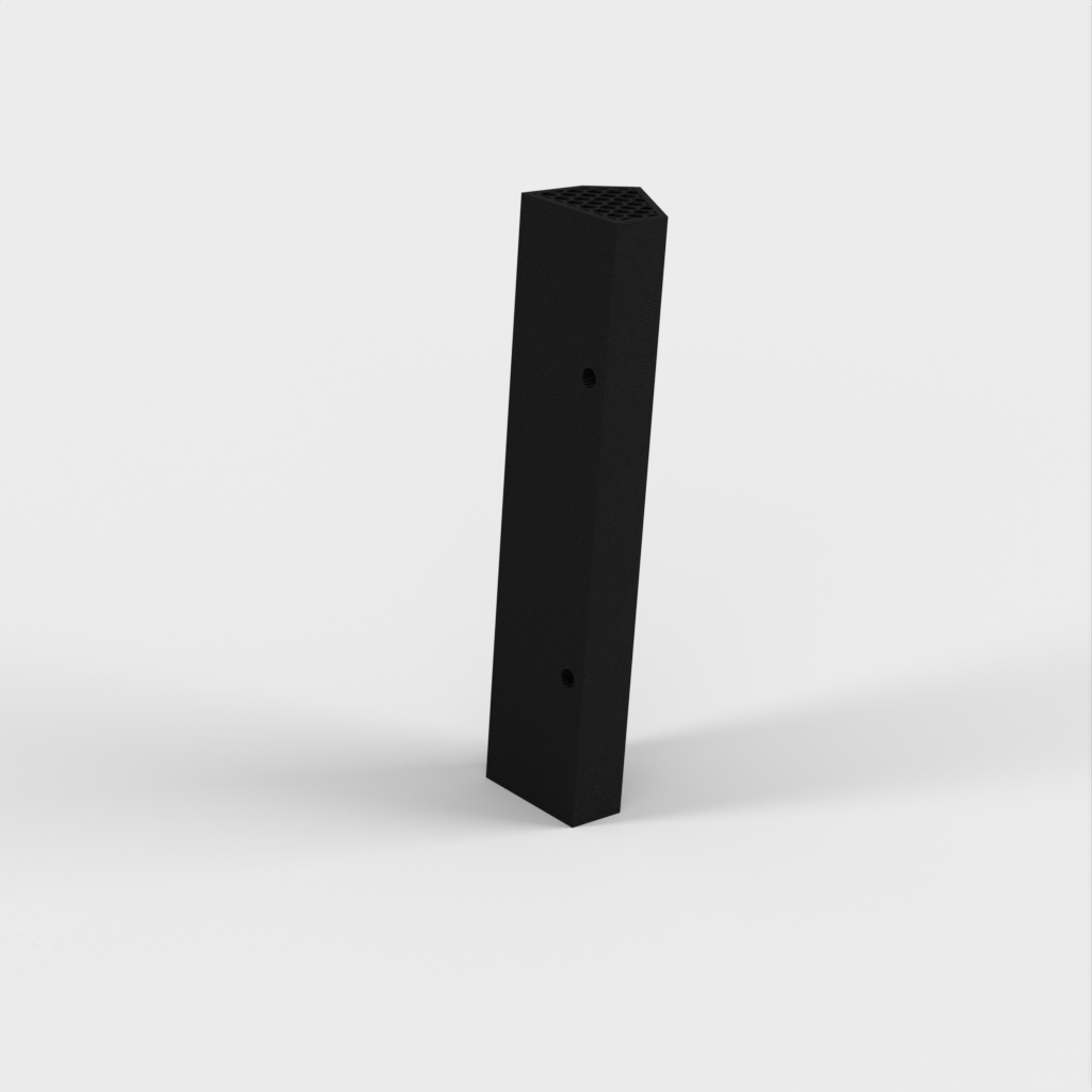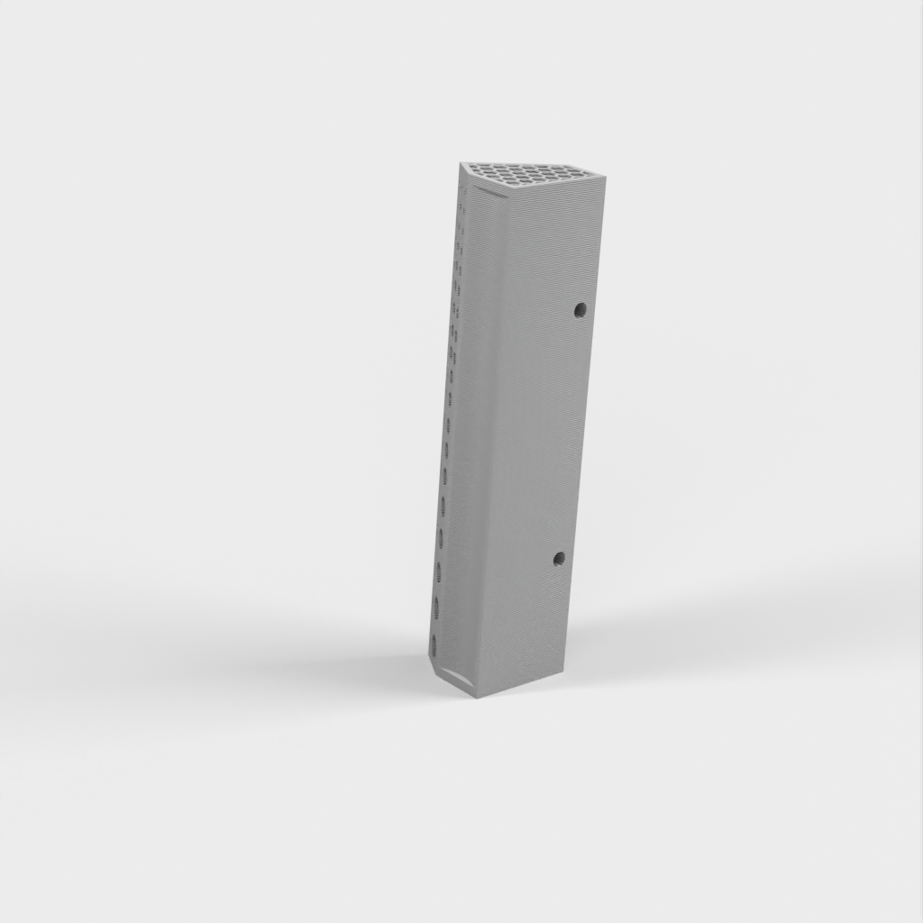 Den er designet til at blive monteret på en væg med to skruer, men kan tilpasses til at montere med lim (som Command Strips) eller magneter.