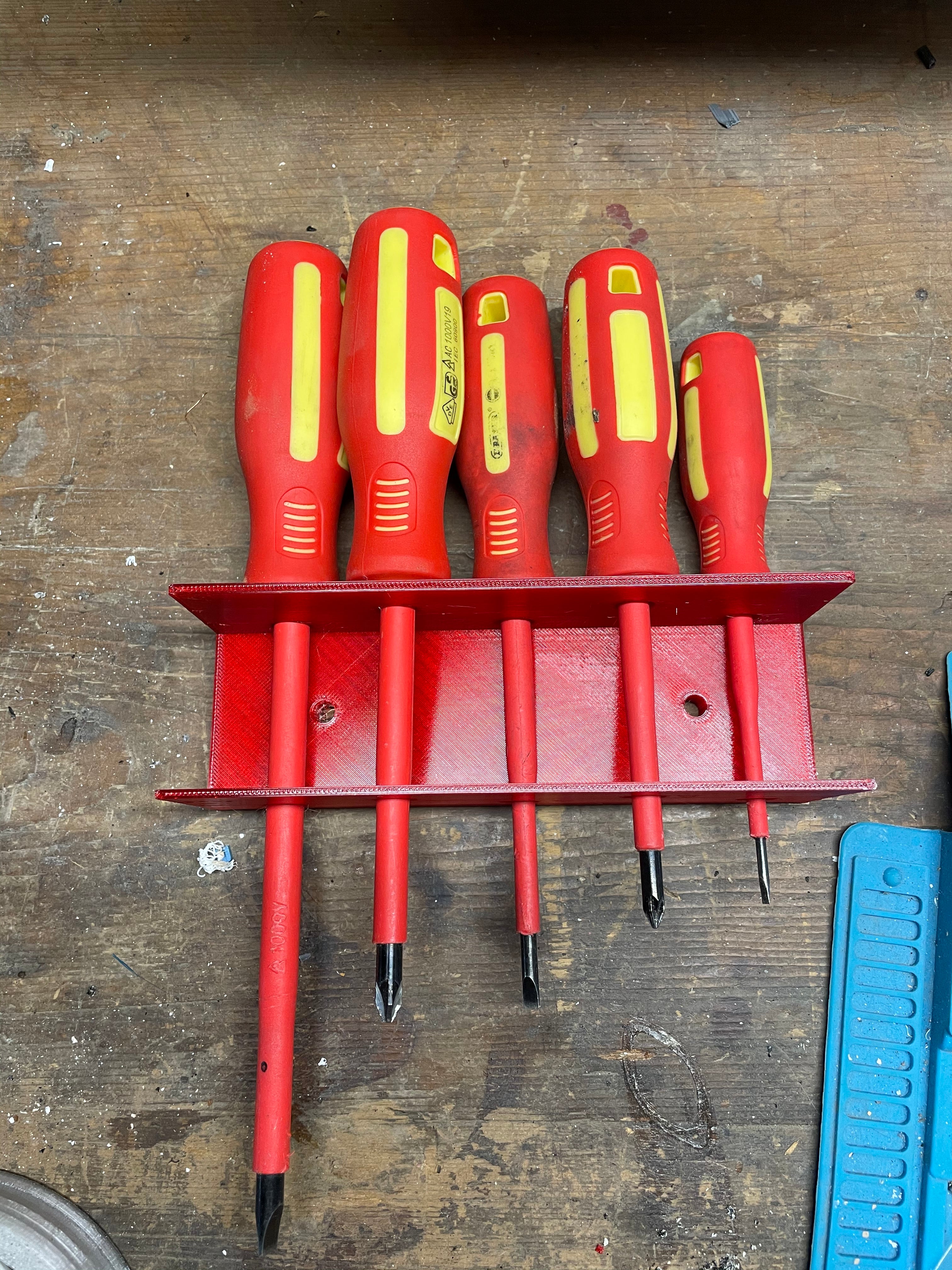 Skruetrækker vægbeslag er anbefalet til større skruetrækkere. Det kan nemt monteres på væggen med skruer, hvilket gør dit værksted eller dit arbejdsområde mere ryddeligt og organiseret. Værktøjsholderen er robust og holdbar, perfekt til at opbevare og arrangere dit værktøj.