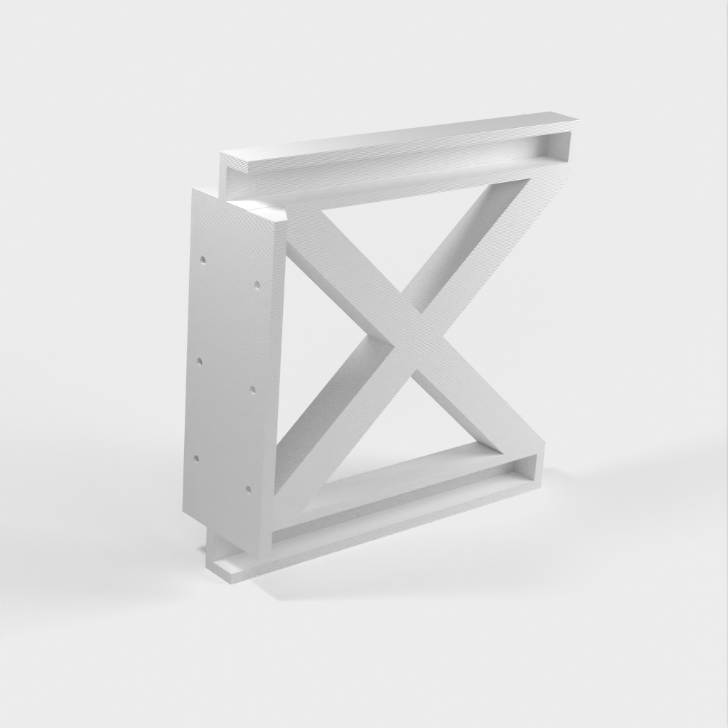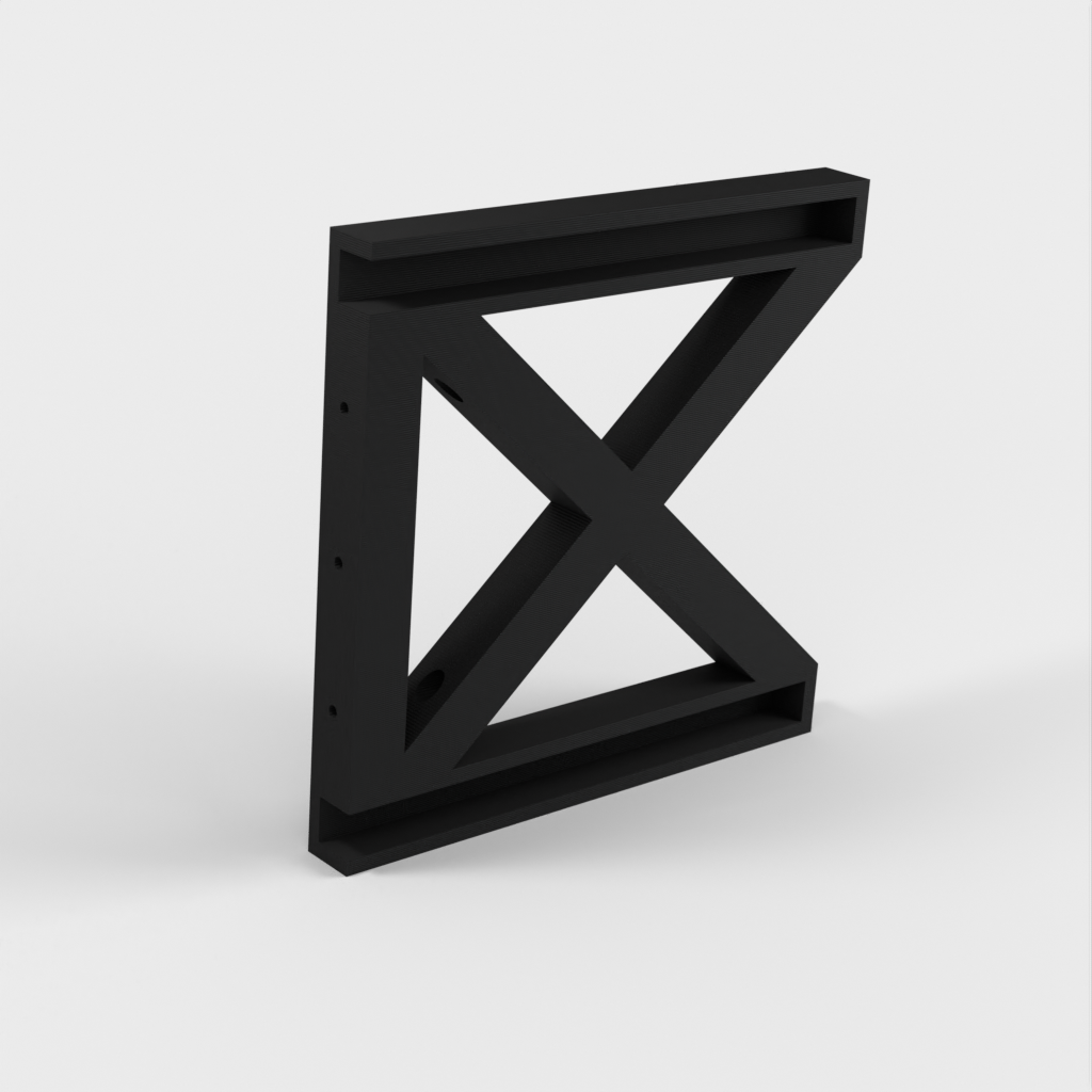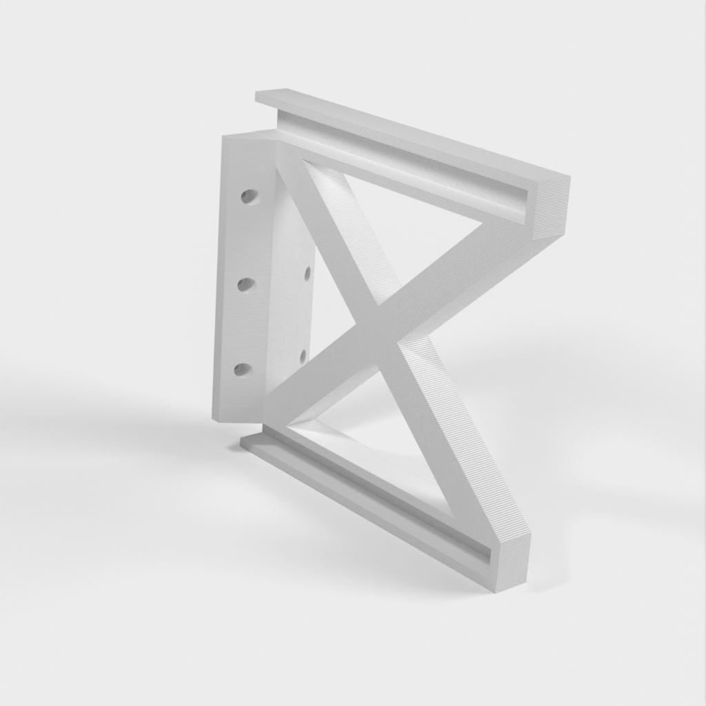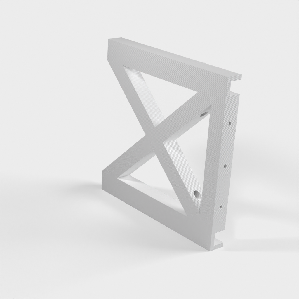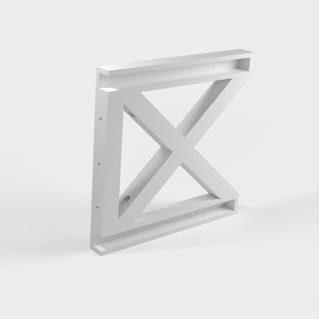 Dette hyldebeslag er designet til at passe til Ikea Burhult hylder, men vil også passe til enhver hylde med de samme dimensioner. Beslagets skruehuller passer til skruer med en hovedbredde på 8,5 mm og gevindbredde på 4 mm. Du skal bruge skrueanker for at sikre, at hylden ikke falder ned fra væggen. For at lave 4 af disse beslag skal du bruge omkring 1 kg filament. Beslagets dimensioner er 200,5 mm x 196,85 mm x 20,25mm.
