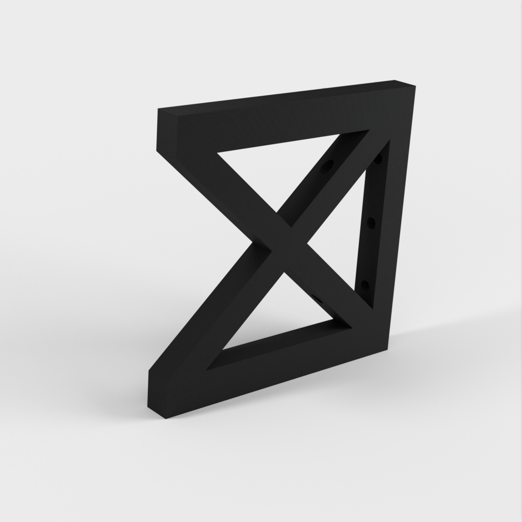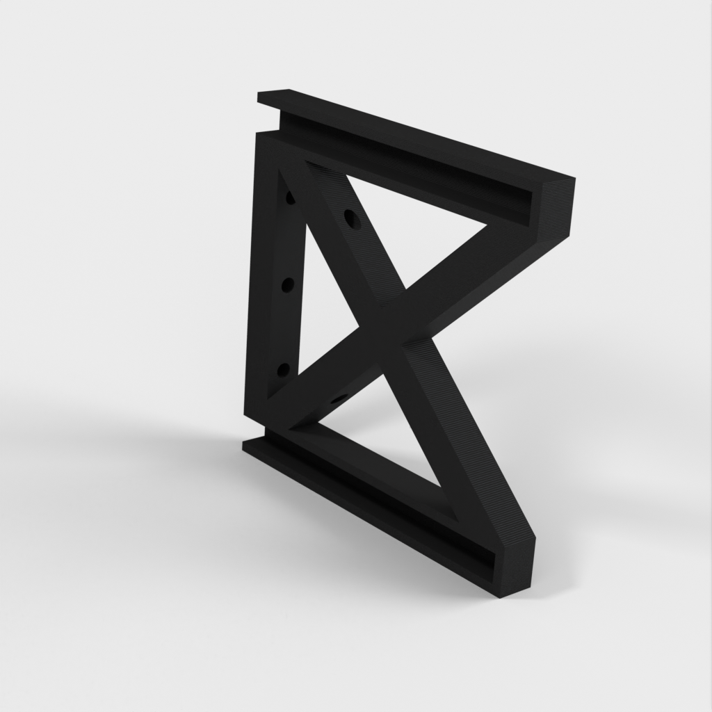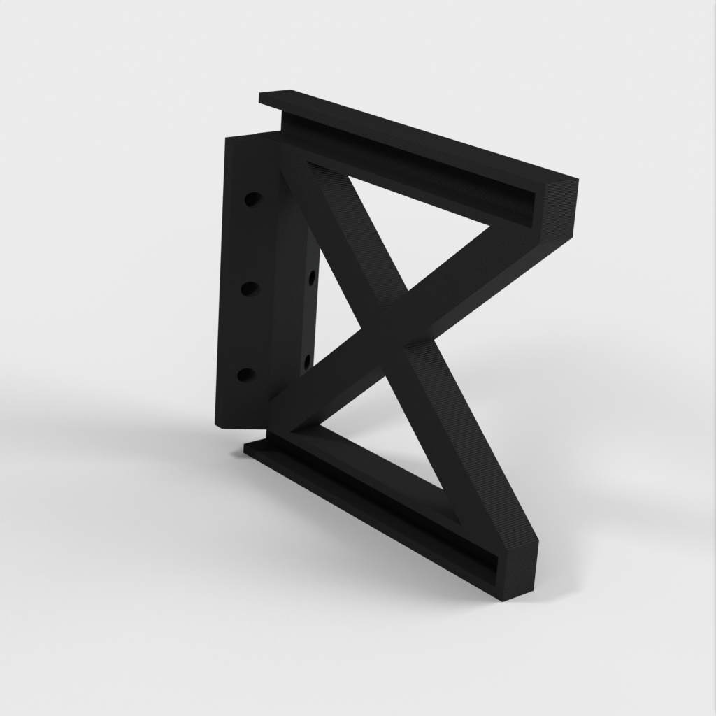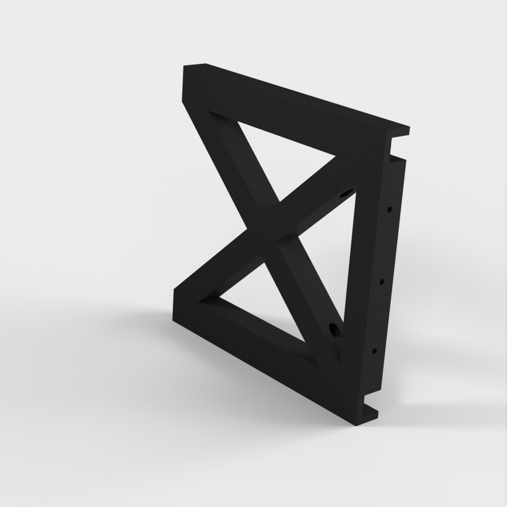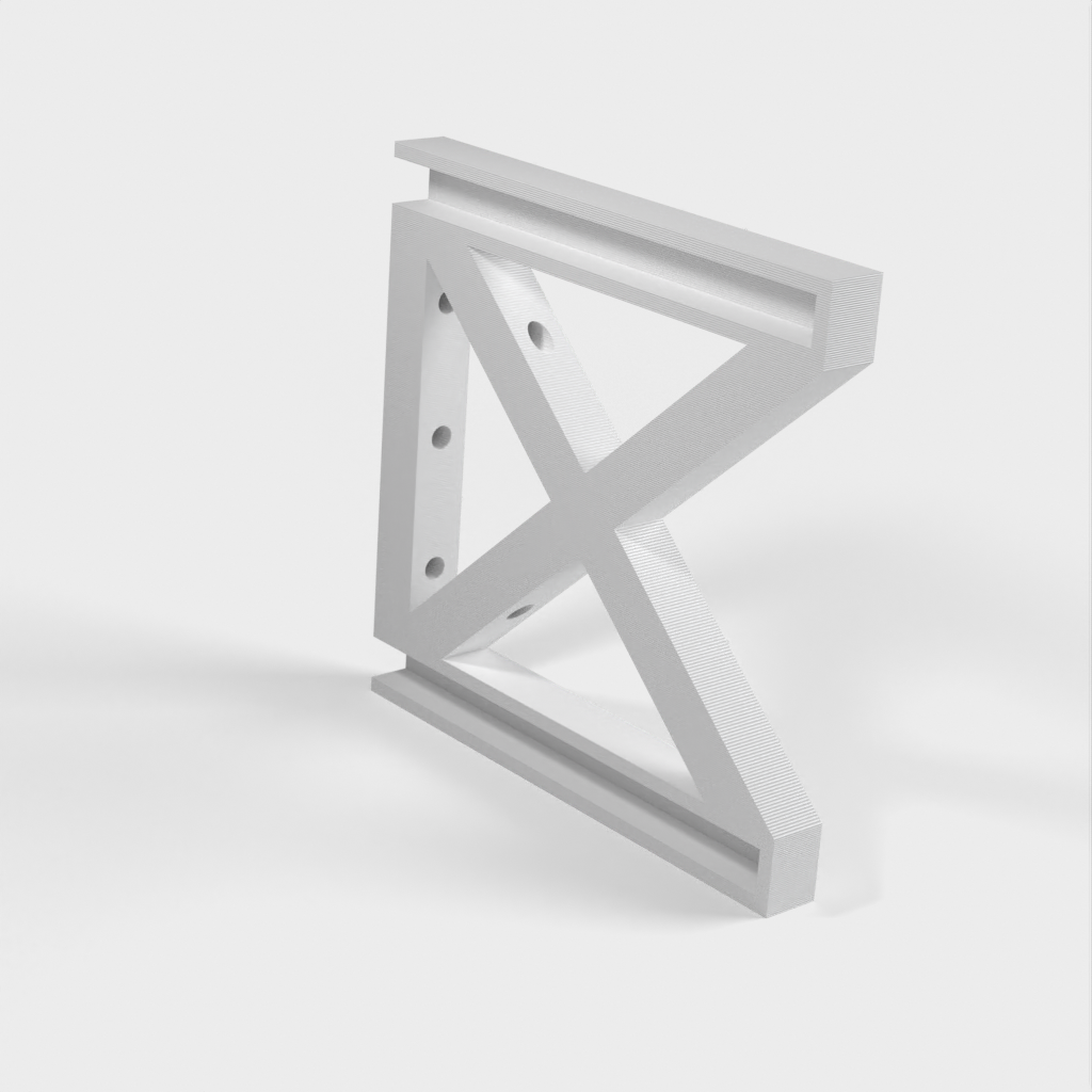 Dette hyldebeslag er designet til at passe til Ikea Burhult hylder, men vil også passe til enhver hylde med de samme dimensioner. Beslagets skruehuller passer til skruer med en hovedbredde på 8,5 mm og gevindbredde på 4 mm. Du skal bruge skrueanker for at sikre, at hylden ikke falder ned fra væggen. For at lave 4 af disse beslag skal du bruge omkring 1 kg filament. Beslagets dimensioner er 200,5 mm x 196,85 mm x 20,25mm.