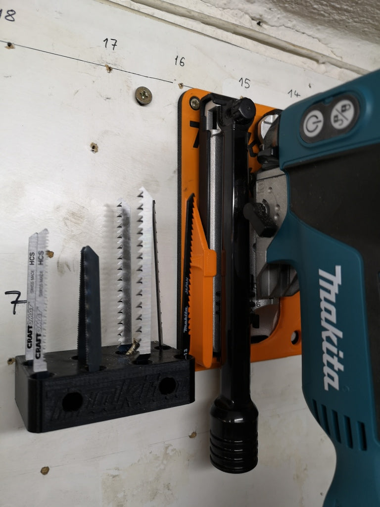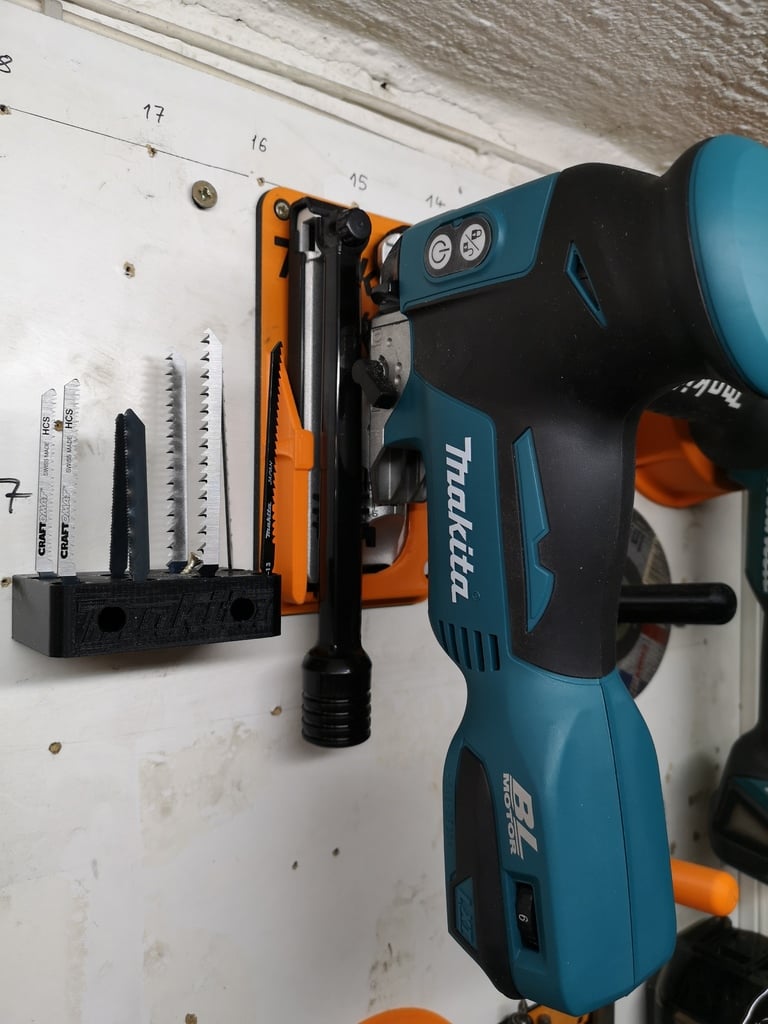 Dette er en vægmonteret jigsaw til Makita DJV181. Værktøjet kan nemt placeres i holderen, hvilket gør din værksted, skur eller arbejdskøretøj mere ryddeligt og organiseret. Den solide vægmontering giver sikker opbevaring og nem adgang til din Makita jigsaw, når det er nødvendigt.
