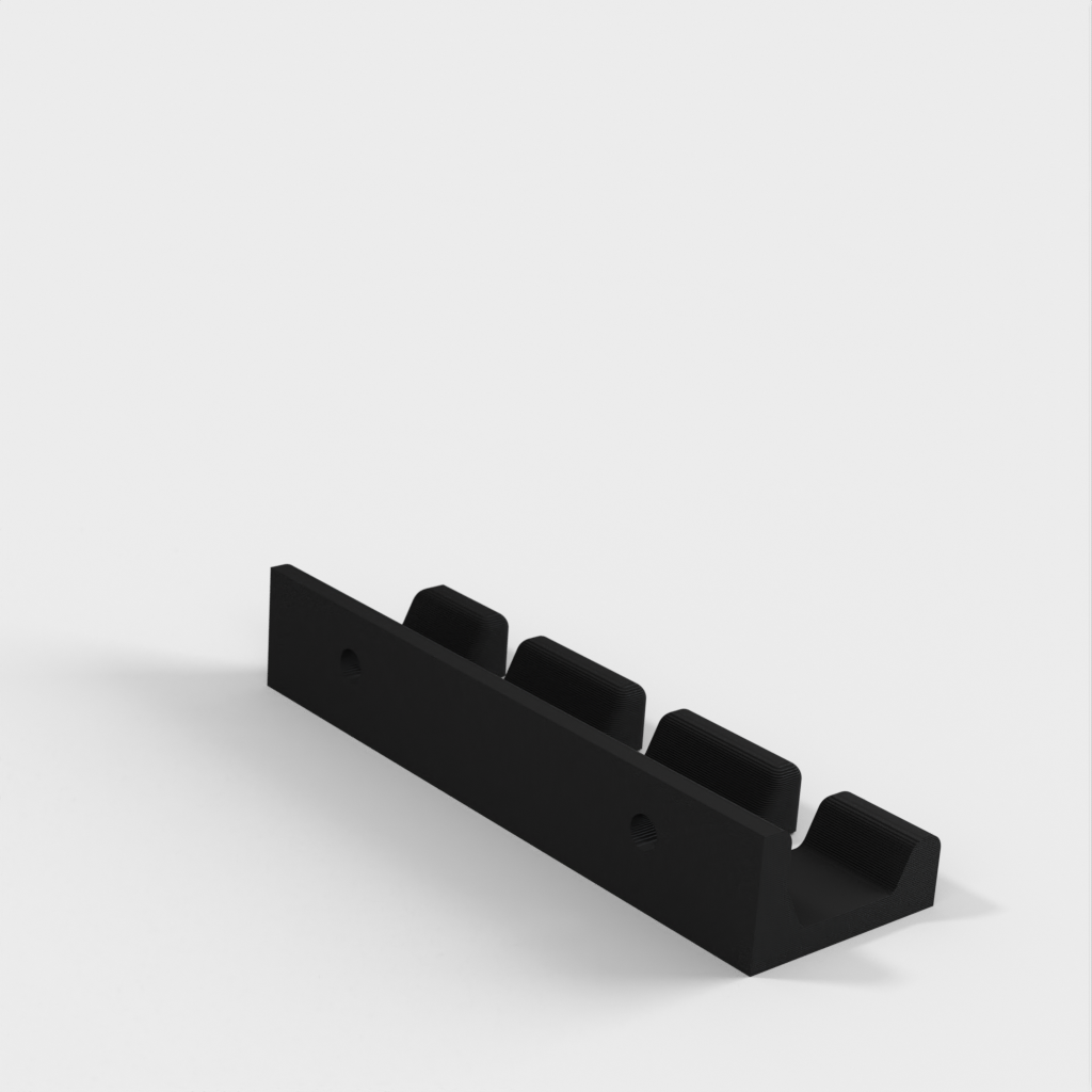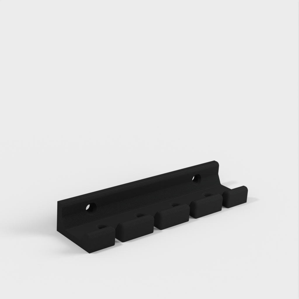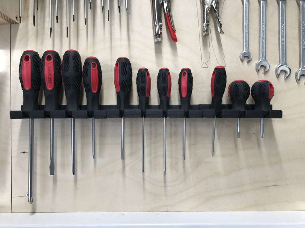 Dette er en skruetrækkerholder til vægmontering. Holderen kan nemt monteres direkte på en væg ved hjælp af 4 skruer. Skruetrækkere kan derefter let placeres i holderen, hvilket gør dit værksted, skur, eller arbejdskøretøj mere ryddeligt.
