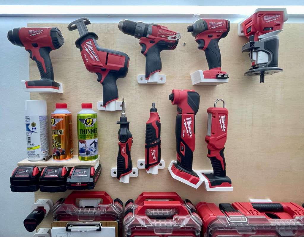 En vægmontering til Milwaukee M18 værktøj. Med denne montering kan du nemt opbevare dit Milwaukee M18 værktøj på væggen og dermed gøre dit værksted, dit skur eller dit arbejdsområde mere ryddeligt.