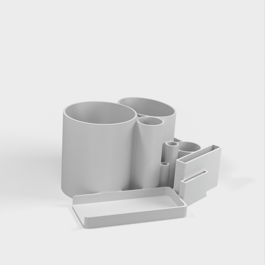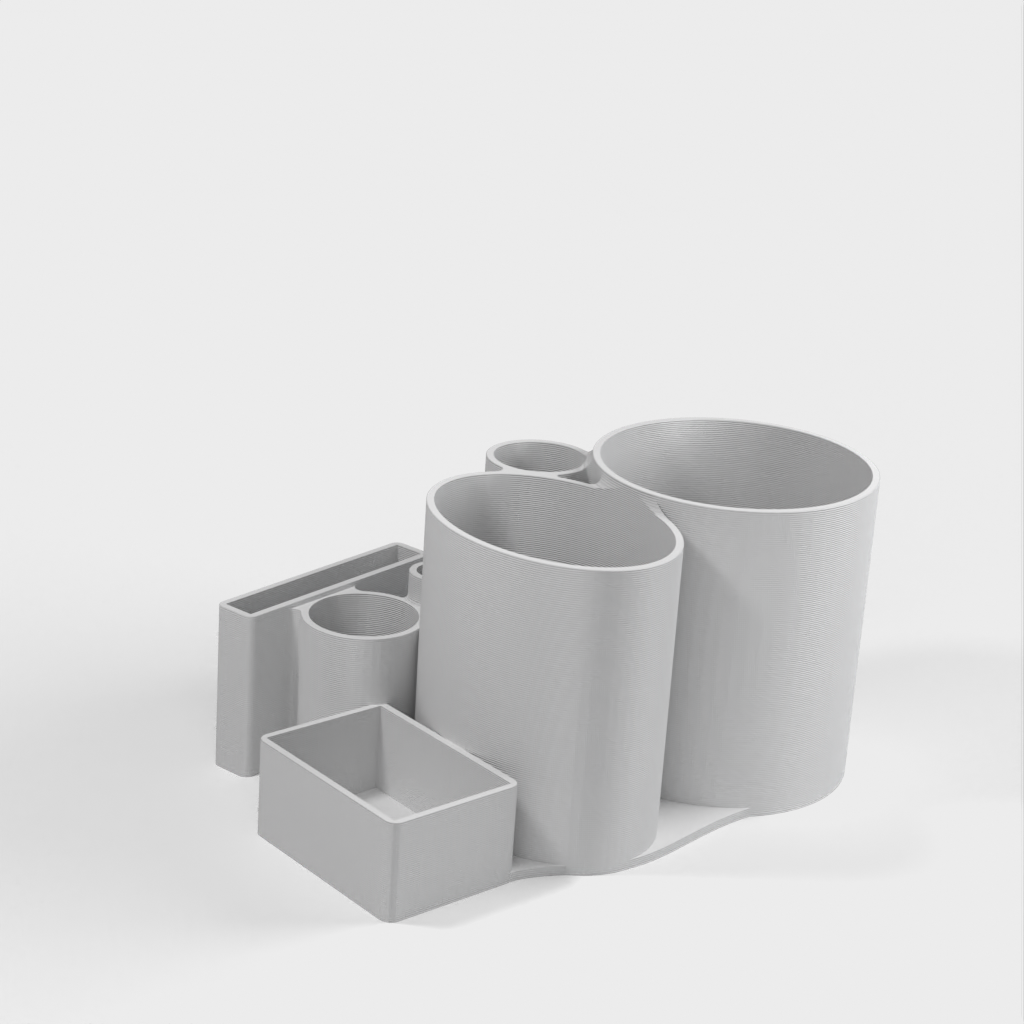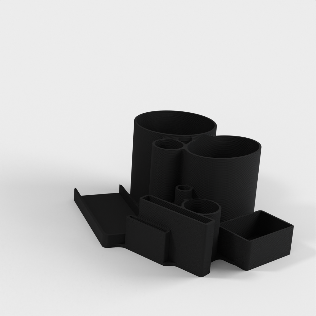 Et værktøjsholder og organizer jeg har designet til at opbevare alle mine værktøjer. Det passer komfortabelt ved siden af printeren. Den er kompatibel med denne dyseholder: https://www.prusaprinters.org/prints/57441-nozzle-organizer. Redskaber som dyser, børster, lim, tang, skruetrækkere, Allen-nøgler, microSD-kort, SD-kort og klude kan alle opbevares i denne holder. Det giver en nem og ryddelig opbevaring og adgang til dine nødvendige værktøjer.