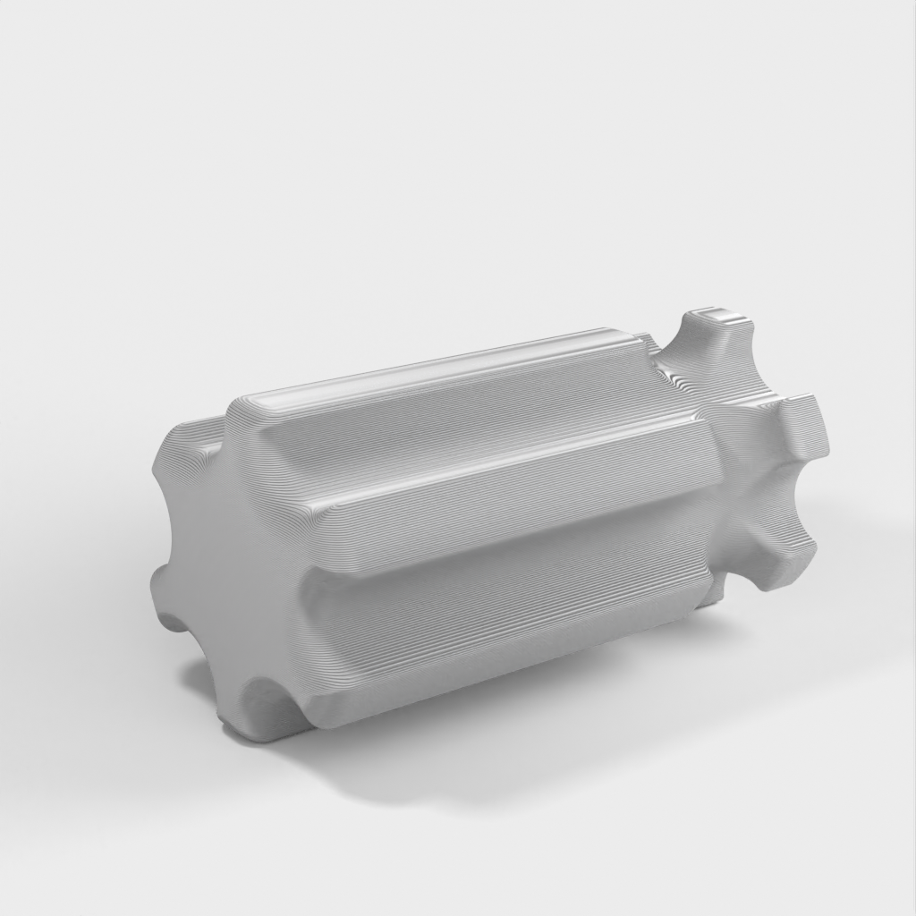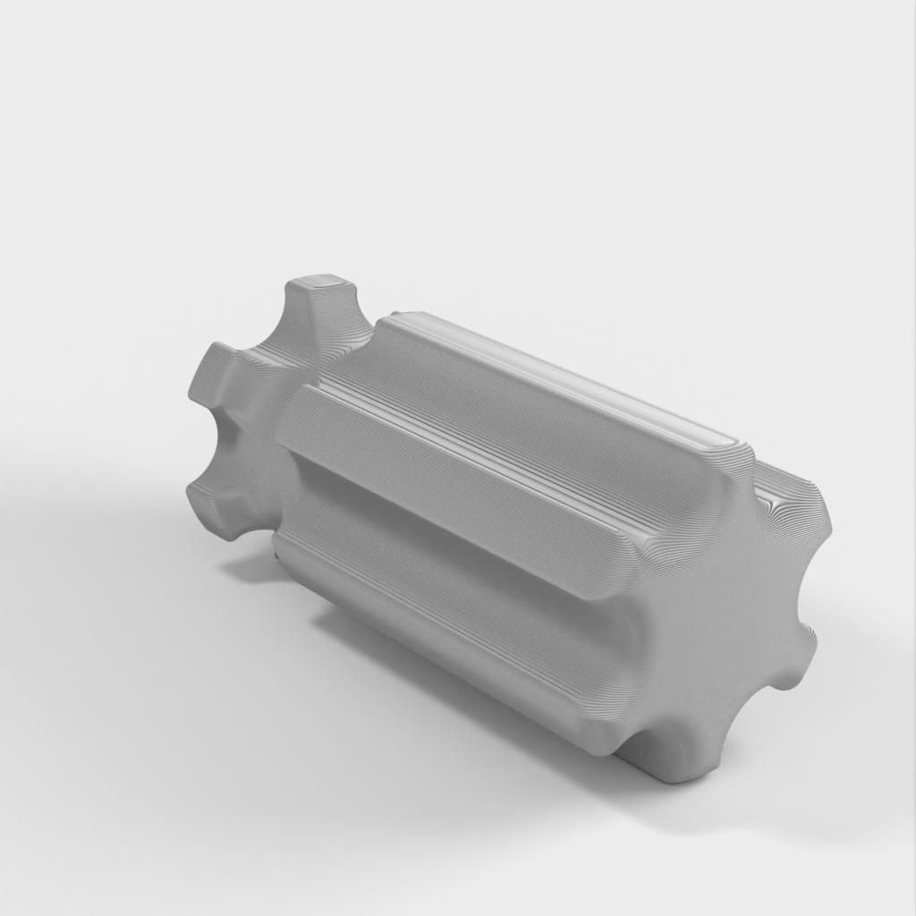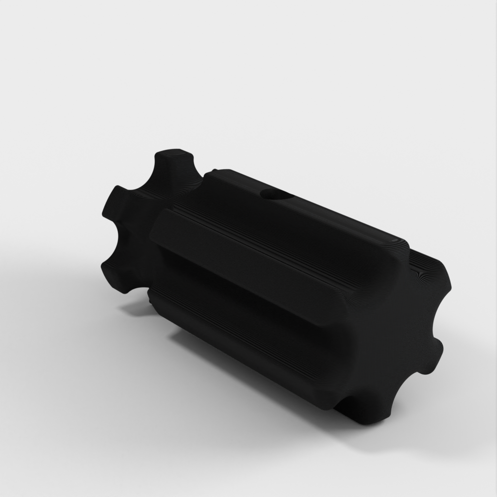 Værktøjsholder designet til at håndtere din afslibningsværktøj bekvemt. Den kan bruges på både træ og plast, uden at have brug for en boremaskine. Håndtaget er modeleret efter et billigt børneskruetrækker for nem håndtering. Hullerne er designet til en diameter på 8,2 mm og leveres med plads til en M4 indstillingsskrue for at låse værktøjet på plads. Der findes også en version uden hullet til indstillingsskruen.
