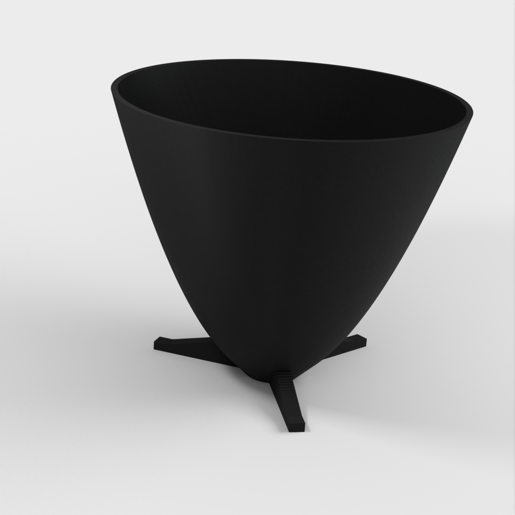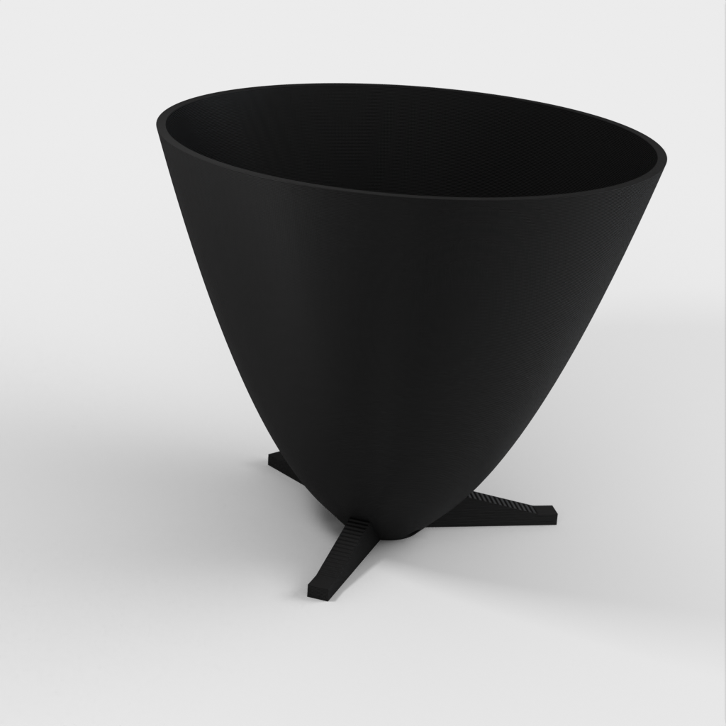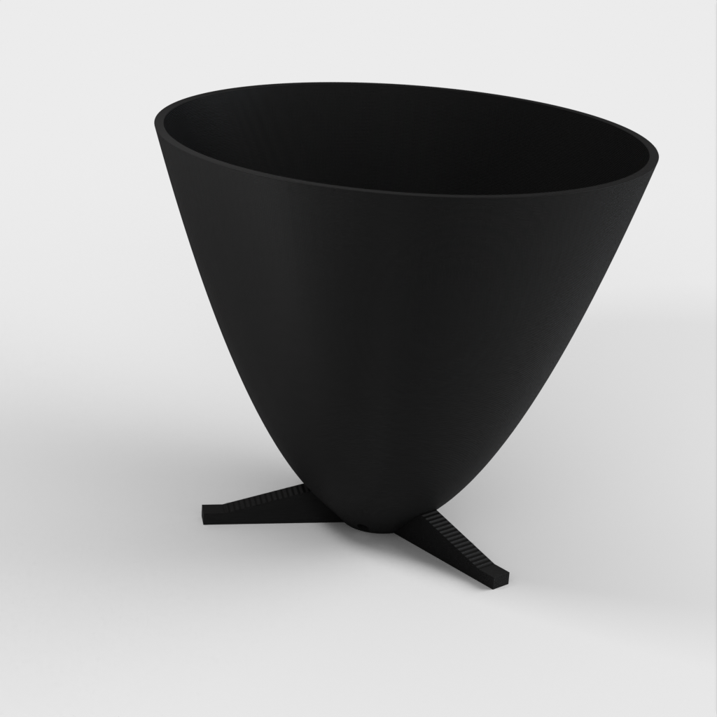 Dette er en parabolsk plantepotte med egne fødder og en uafhængig dræningsplade. Den er designet til at blive printet uden supports. Selvom figuren er printet med PLA, kan du også bruge andre materialer med de korrekte indstillinger. Prusa filament er anbefalet, men min foretrukne filament til disse potter er Mukha de Fillamentum.